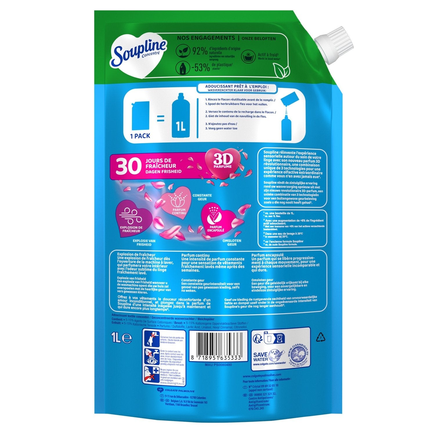 Entdecken Sie die neue Soupline Grand Air Öko-Nachfüllpackung mit 30 Tagen Frischegarantie! Genießen Sie mit dem neuen revolutionären 3D-Duft eine einzigartige Kombination aus 3 Technologien für ein einzigartiges Sinneserlebnis. Verleihen Sie Ihrer Wäsche einen intensiven Duft und genießen Sie gleichzeitig die unvergleichliche Weichheit von Soupline. Eine Formel, die auch bei Kaltwäsche* funktioniert, mit 92 % Inhaltsstoffen natürlichen Ursprungs in einer umweltverträglicheren Verpackung mit 50 % weniger Kunststoff**. *bei 25 °C Waschwasser ** im Vergleich zur 1-Liter-Flasche