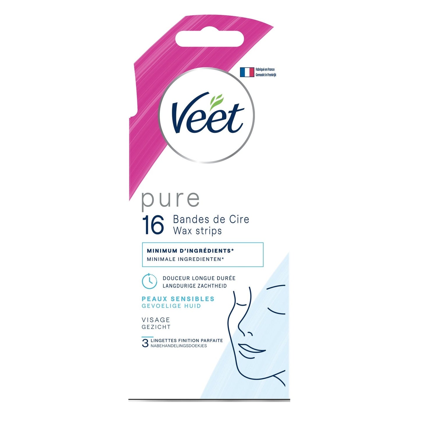 VEET PURE – 16 Kaltwachsstreifen für das Gesicht – Empfindliche Haut – Von Dermatologen empfohlen – Langanhaltende Haarentfernung
