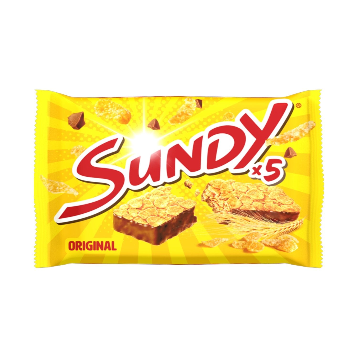 SUNDY ist die perfekte Verbindung aus goldenen, beim Biss knusprigen Cornflakes und schmelzender Zartbitterschokolade. Sundy, ein Riegel Sonnenschein!