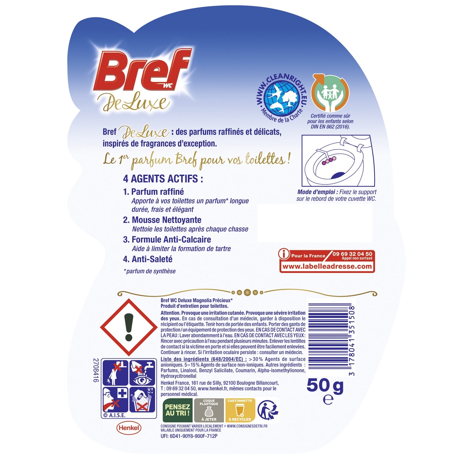 Raffinierte und zarte Düfte*, inspiriert von außergewöhnlichen Düften, Lang anhaltende Frische, Anti-Kalk-Wirkung zur Begrenzung der Kalkbildung, Reinigungsschaum und Anti-Schmutz-Schutz für Ihre Toilette, Bref-Duft für Ihre Toilette