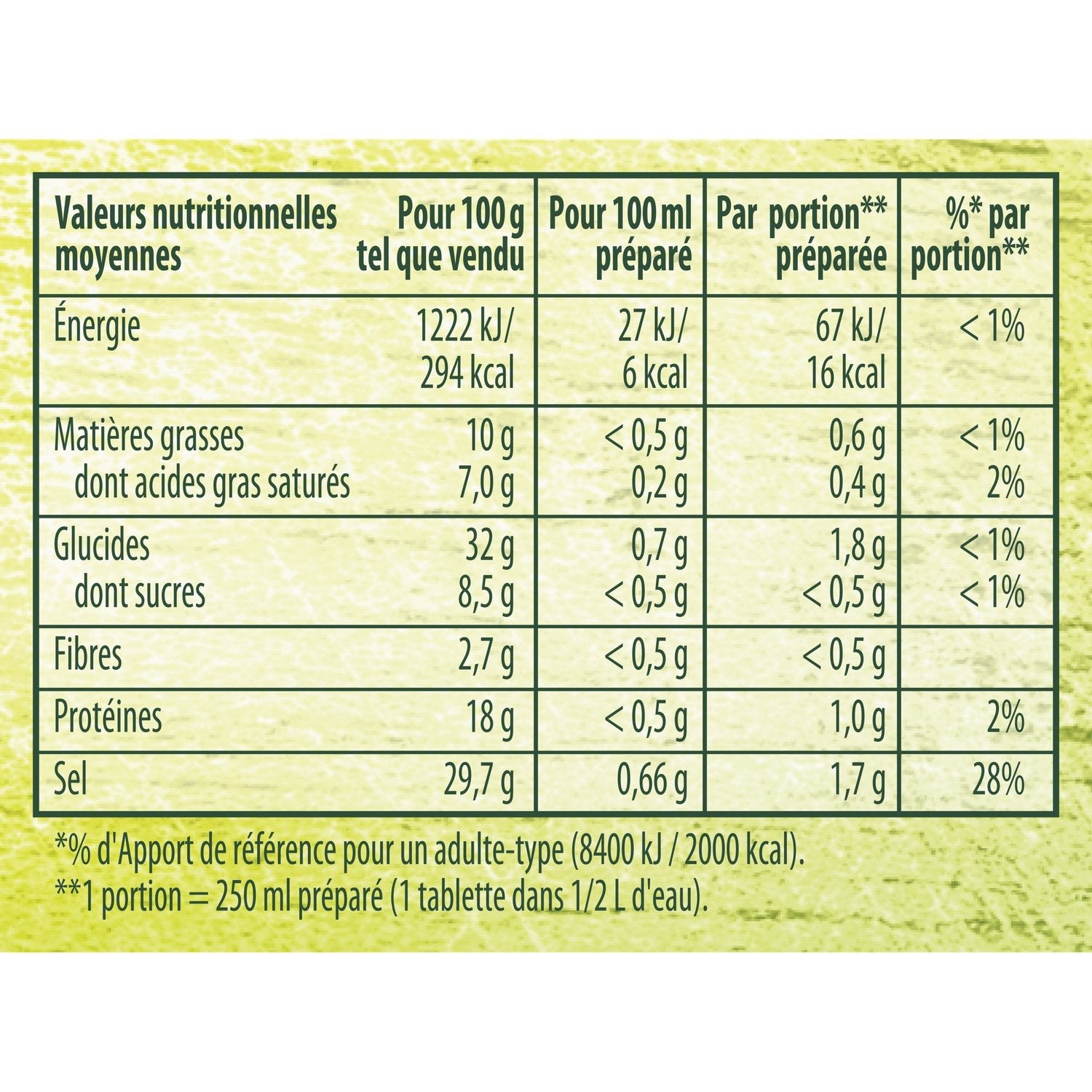 Holen Sie sich den Süden auf Ihren Teller mit Knorr® Mediterrane Gemüsebrühe, 12 Tabletten.,Eine praktische Brühe zum Verfeinern Ihrer kulinarischen Zubereitungen.,Diese Gemüsebrühe ist ideal, um den Geschmack Ihrer Gemüsepfannen, hausgemachten Suppen oder sogar Ihrer Pasta, Ihres Reises usw. zu verbessern.,Nutri-Score B, diese Brühe wird ohne Farb- oder Konservierungsstoffe zubereitet.,Schnell und einfach zu verwenden: Geben Sie 2 Tabletten Knorr® Mediterrane Gemüsebrühe in das köchelnde Wasser Ihrer Pasta.,Knorr® hat eine Reihe von Kochhilfen und Brühen entwickelt, mit denen Sie Ihren alltäglichen Gerichten ganz einfach Geschmack verleihen können.