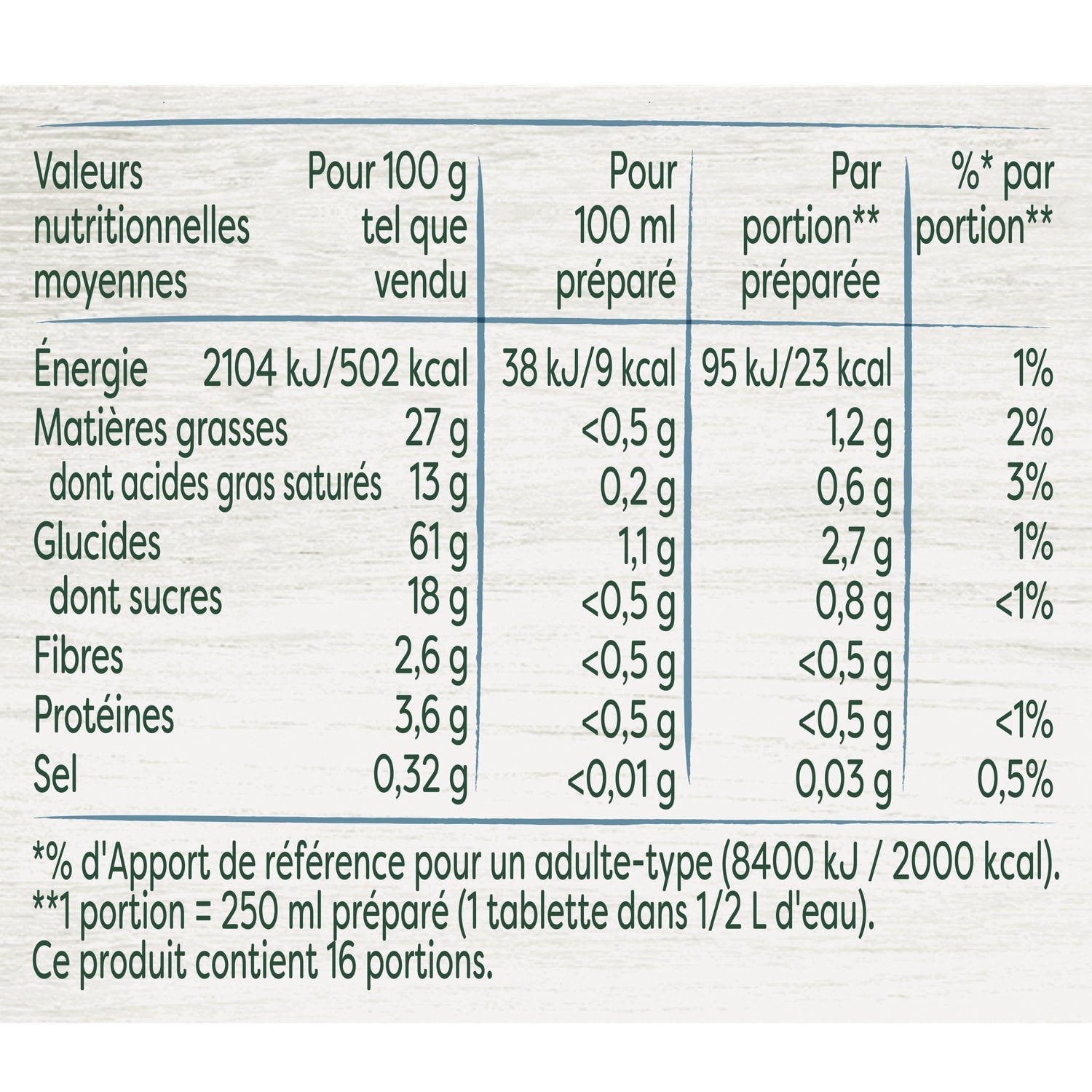 Entdecken Sie Knorr® 8 Tabletten salzfreie Hühnerbrühe, Ihren täglichen Verbündeten, um den Geschmack Ihrer Gerichte ohne Salzzugabe zu verbessern! Kontrollieren Sie Ihre Salzaufnahme, ohne Kompromisse beim Geschmack einzugehen!,Diese Reihe salzfreier Brühen von Knorr® wird mit einer Mischung sorgfältig ausgewählter Zutaten und Kräuter hergestellt, um den Geschmack Ihrer Gerichte zu verbessern.,Diese geschmackvolle Brühe von Knorr® wird ohne Geschmacksverstärker, Farbstoffe oder Konservierungsmittel zubereitet.,Nutri-Score B: Diese Hühnerbrühe wird aus Freilandgeflügel hergestellt.,Entdecken Sie die 8 geschmackvollen salzfreien Brühen!,Schnell und einfach zuzubereiten: 1 Tablette in 500 ml Wasser auflösen. Kein Salzzusatz erforderlich. Entdecken Sie auch Knorr® salzfreie Gemüsebrühe