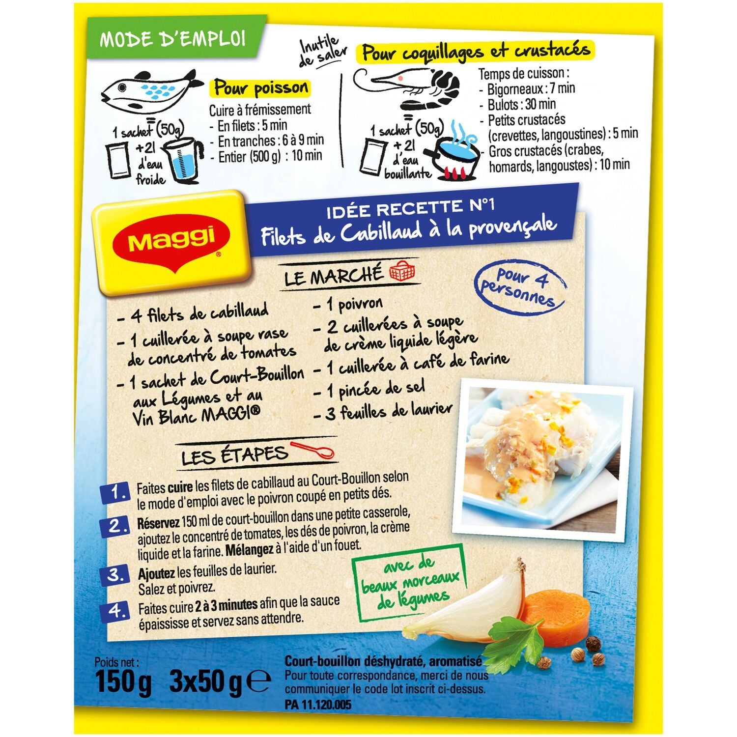 Brühwürfel, um Ihrem Fisch, Ihren Schalentieren und Krustentieren eine delikate und duftende Note zu verleihen.,Eine schnelle und praktische Zubereitung, um Ihre Gerichte im Handumdrehen zu verfeinern!,Mit schönen Gemüsestücken ermöglicht Ihnen MAGGI Court-Bouillon eine geschmackvolle und fettarme Küche.,Entdecken Sie unsere Rezeptidee direkt auf der Rückseite der MAGGI Court-Bouillon-Packungen.,100 % pflanzliche Court-Bouillon (enthält keine Zutaten tierischen Ursprungs).