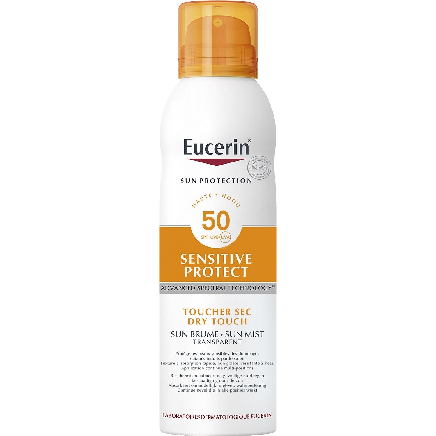 Eucerin SUN PROTECTION SENSITIVE PROTECT Sheer Mist SPF 50 ist ein transparentes Sonnenschutz-Bodyspray, das speziell für empfindliche Haut entwickelt wurde. Es bietet eine transparente, ultraleichte Textur, die schnell einzieht und einen erfrischenden Effekt bietet. Es ist wasserfest, fettet nicht und klebt nicht.