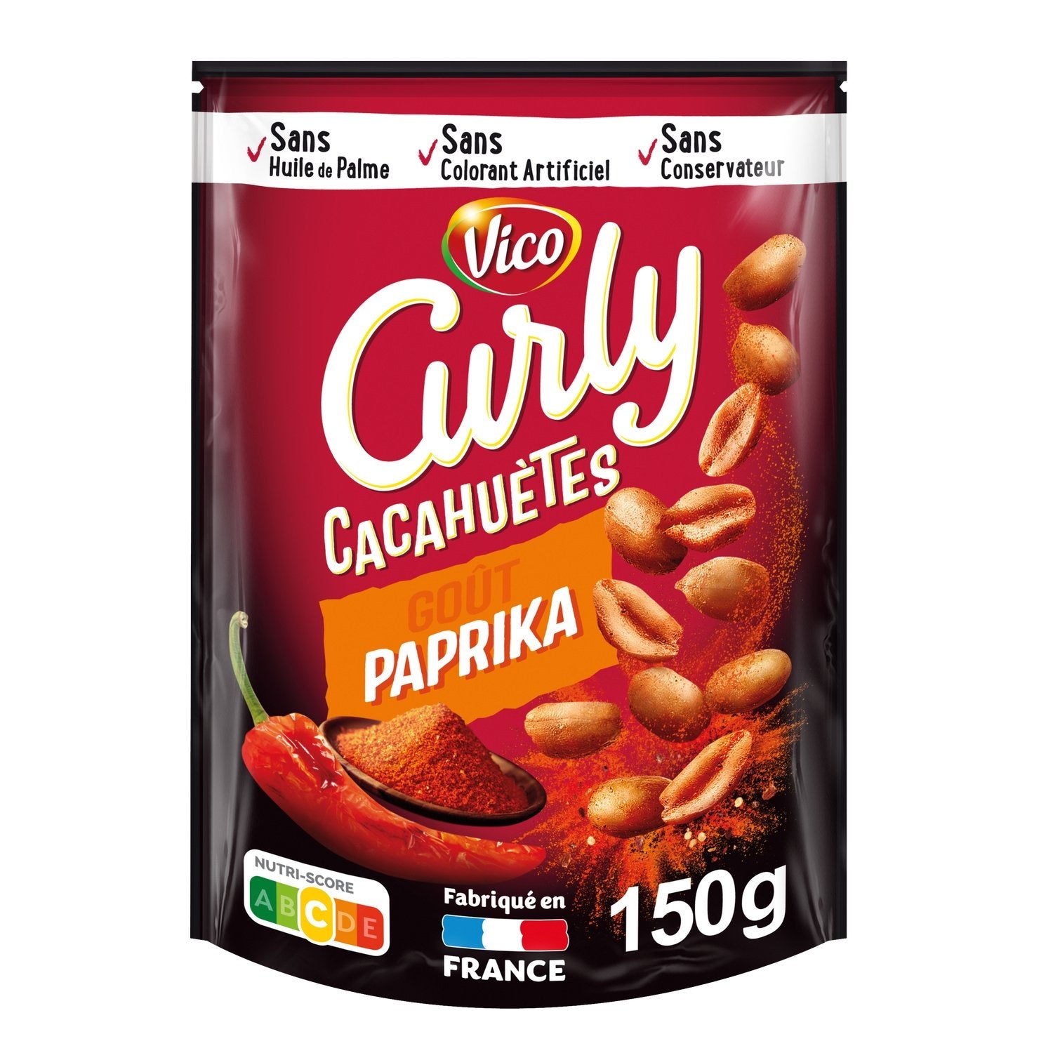 Curly, der Erdnussexperte, ist hier, um Ihren Aperitif aufzupeppen! Entdecken Sie eine Geschmacksexplosion dank der perfekten Verbindung von Erdnüssen und leicht rauchigem, würzigem Paprika.