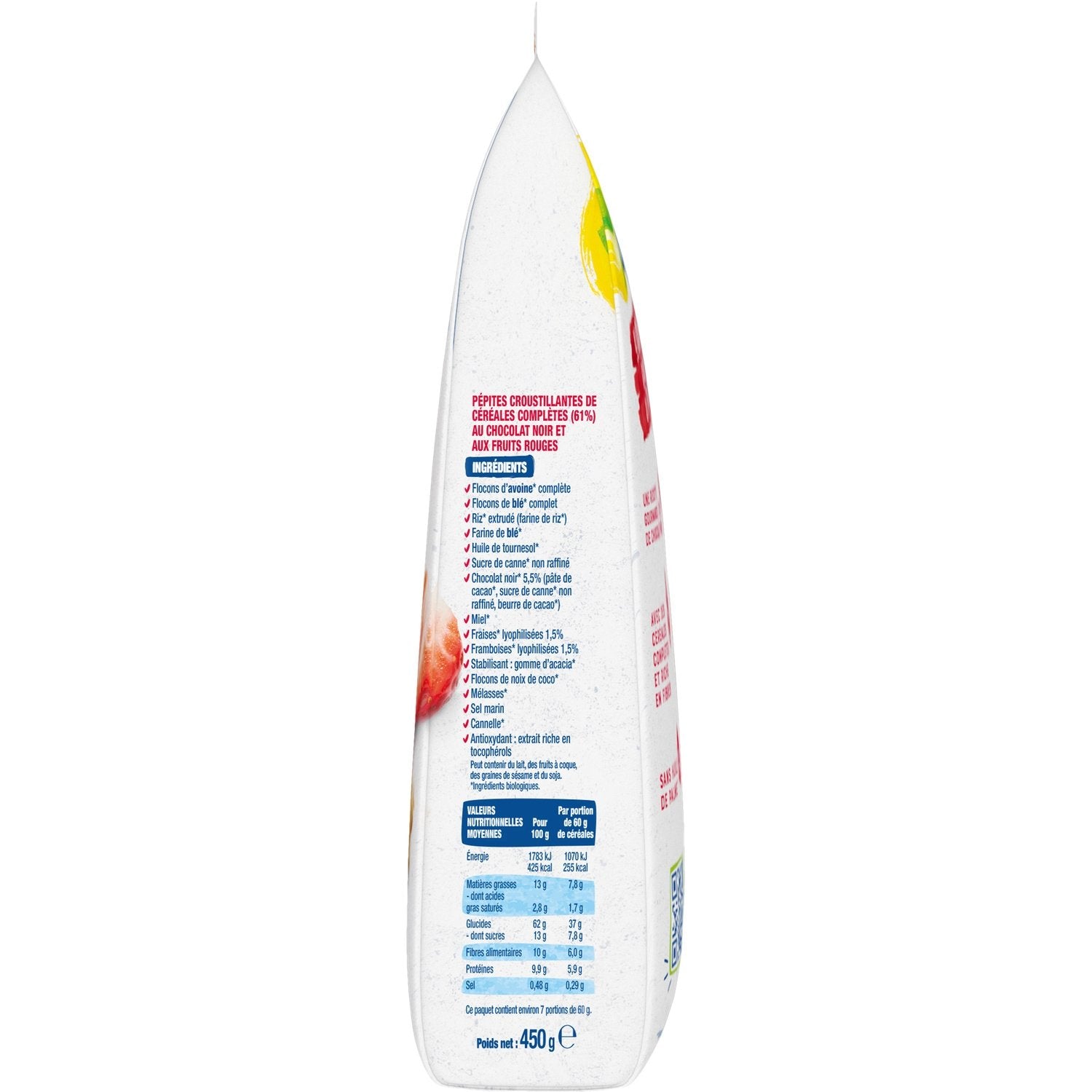 Knusprige Vollkorn-Nuggets (61%) mit dunkler Schokolade und roten Früchten