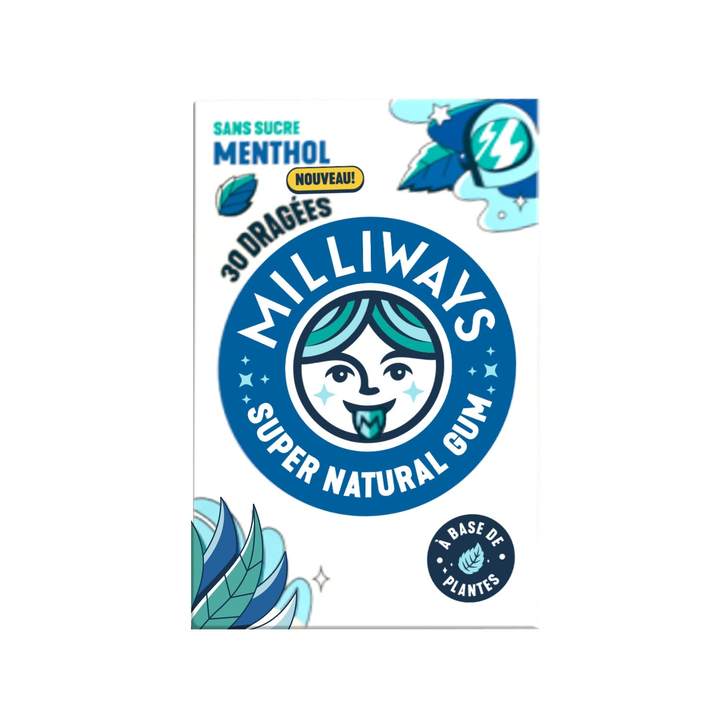 Milliways, ein zuckerfreier Kaugummi aus pflanzlichem Gummi. Sein Claim: SUPER NATURAL GUM passt perfekt zum Produkt, das sowohl organoleptisch als auch natürlich überzeugt. Seine Menthol- und Fruchtaromen werden in einer Milliways-Pappschachtel präsentiert – ein pflanzlicher Kaugummi mit intensivem Geschmack!