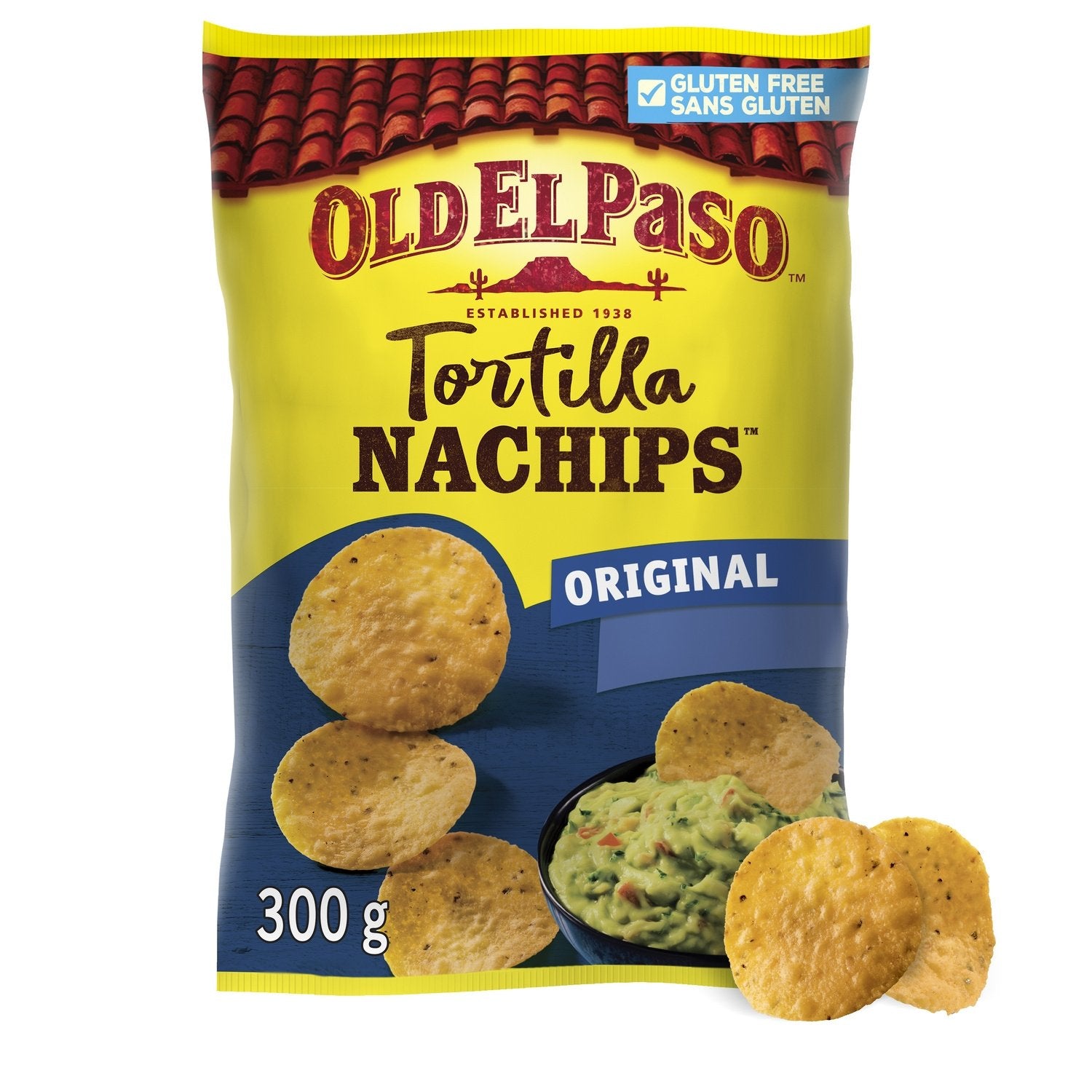 Entdecken Sie die unverzichtbaren Nachips Original Old El Paso™ Maxi Format 300 g, köstlich knusprig, 100 % Vollkornmais. Peppen Sie Ihre Vorspeisen auf und genießen Sie Ihre Original Nachips mit Familie oder Freunden mit dem köstlichen Old El Paso™ milden Salsa-Dip oder Old El Paso™ Guacamole. Und nicht vergessen: Freitag ist Fajitas-Party!