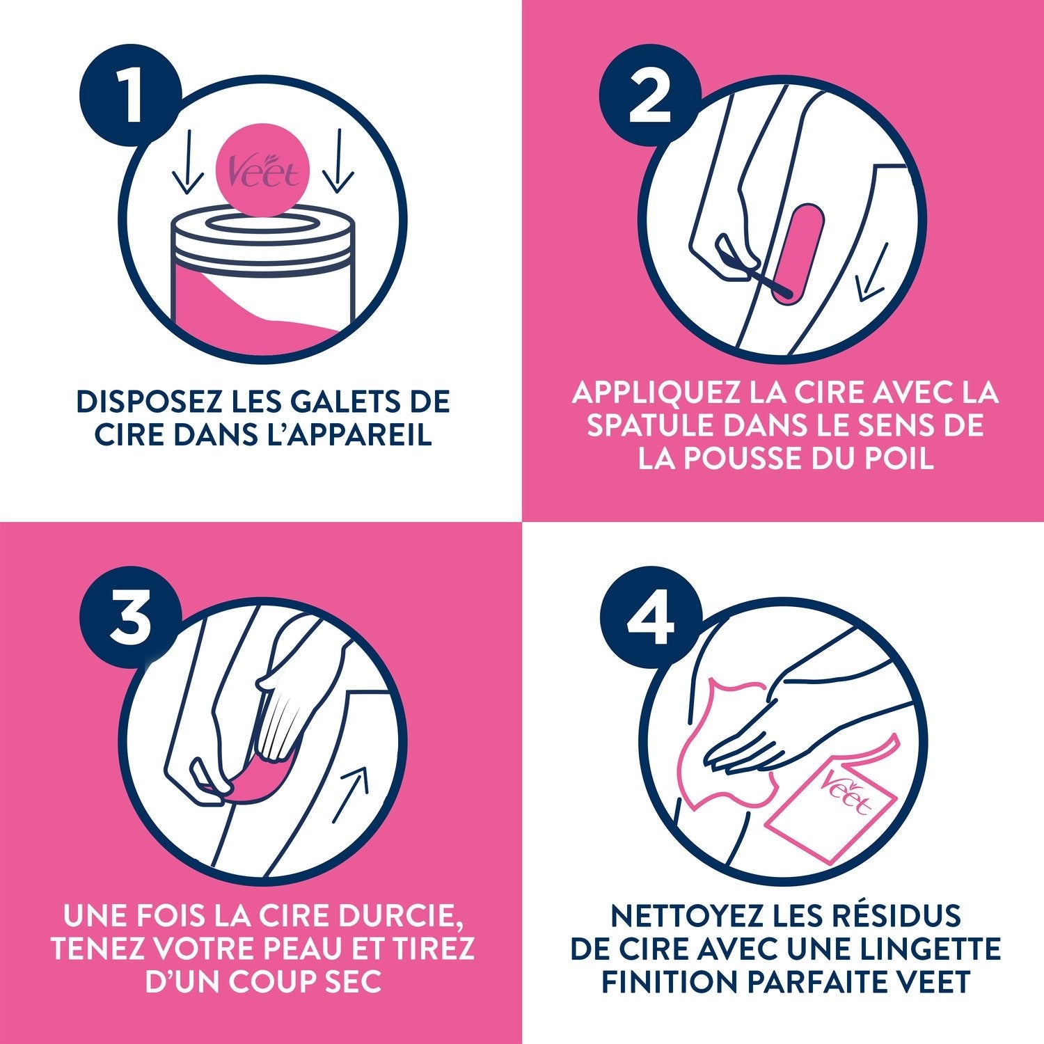 • In nur 30 Minuten erreicht das Gerät die ideale Temperatur und hält diese während der gesamten Sitzung. • Der innere Rand ermöglicht das Entfernen von überschüssigem Wachs und der praktische Deckel ermöglicht die einfache Aufbewahrung nach Gebrauch. • Der Spatel wurde speziell für eine einfache Anwendung entwickelt und kann beliebig oft wiederverwendet werden. • Mit seinem schlanken Design und dem sanften Licht, das es verbreitet, schafft Veet Spawax eine entspannende Atmosphäre. • Die dezent duftenden Wachskiesel schaffen eine Atmosphäre, die zum Cocooning einlädt.