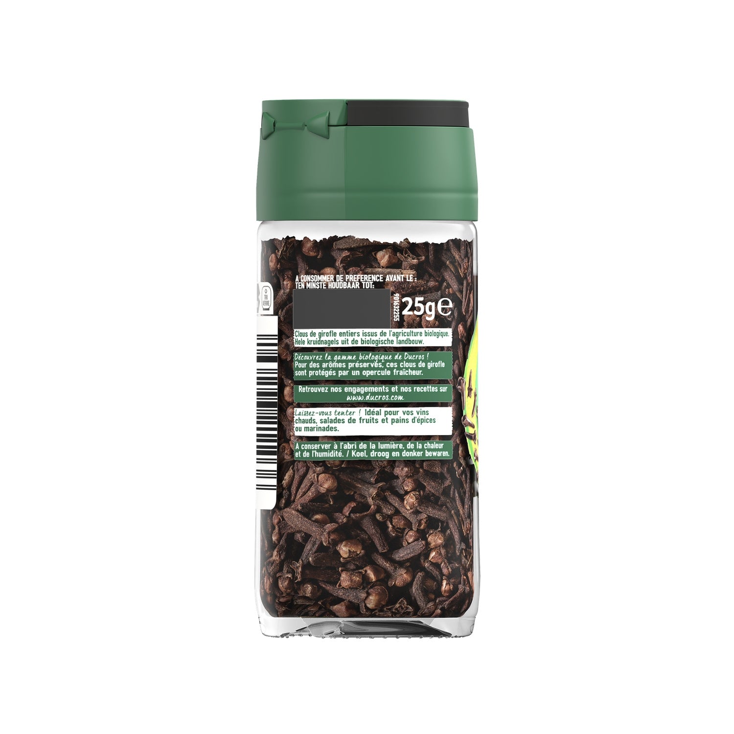 Entdecken Sie das Bio-Sortiment von Ducros! Um ihr Aroma zu bewahren, sind diese Nelken durch ein Frischesiegel geschützt.