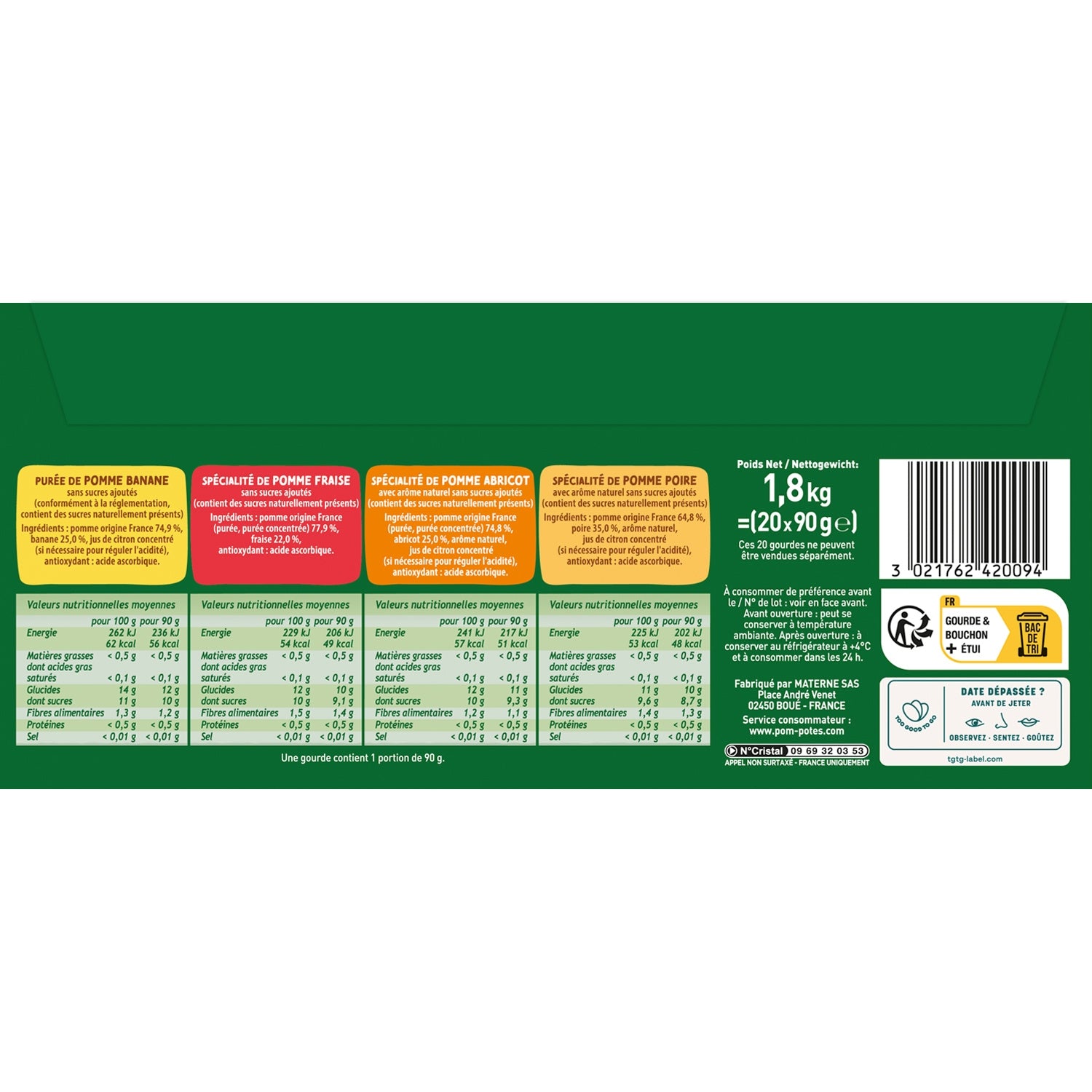 POM'POTES® ohne Zuckerzusatz* ist der Snack für unterwegs, hergestellt aus französischen Äpfeln aus ökologisch verantwortungsvollem Anbau. Bei POM'POTES® engagieren wir uns für das Wohlbefinden und den Genuss von Jung und Alt! Jeder unserer Beutel enthält keinen Zuckerzusatz* und entspricht 1 der 5 empfohlenen Tagesportionen Obst und Gemüse. *Enthält von Natur aus Zucker, wie gesetzlich vorgeschrieben.