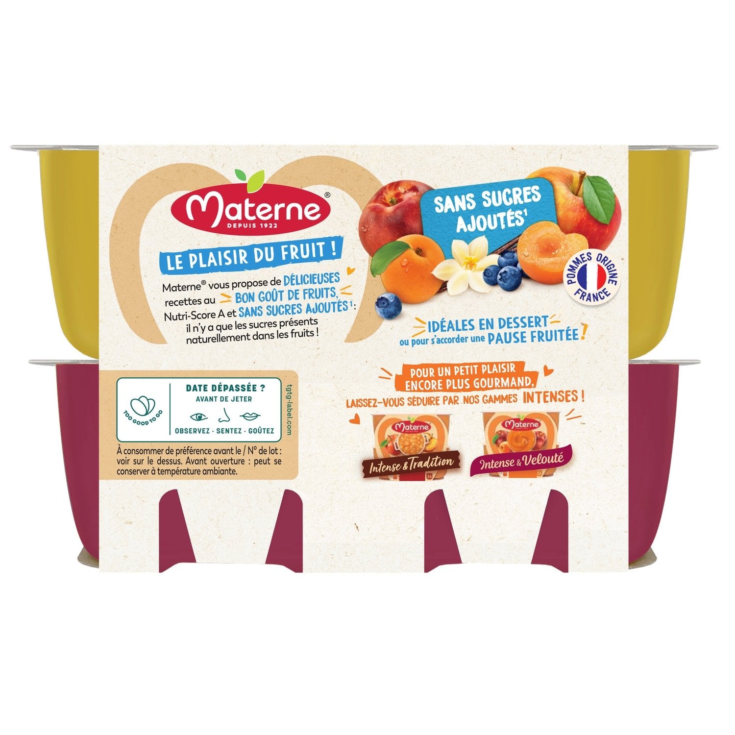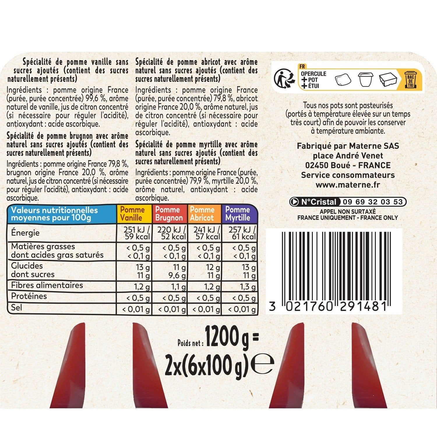 Bei Materne® legen wir großen Wert darauf, Ihnen das beste Obst zu bieten. Deshalb bieten wir diese Rezepte ohne Zuckerzusatz an (enthält den in Früchten natürlich vorkommenden Zucker). Diese Produkte werden mit Äpfeln, Nektarinen und Aprikosen aus Frankreich hergestellt, und die Äpfel stammen ebenfalls aus ökologischem Anbau!