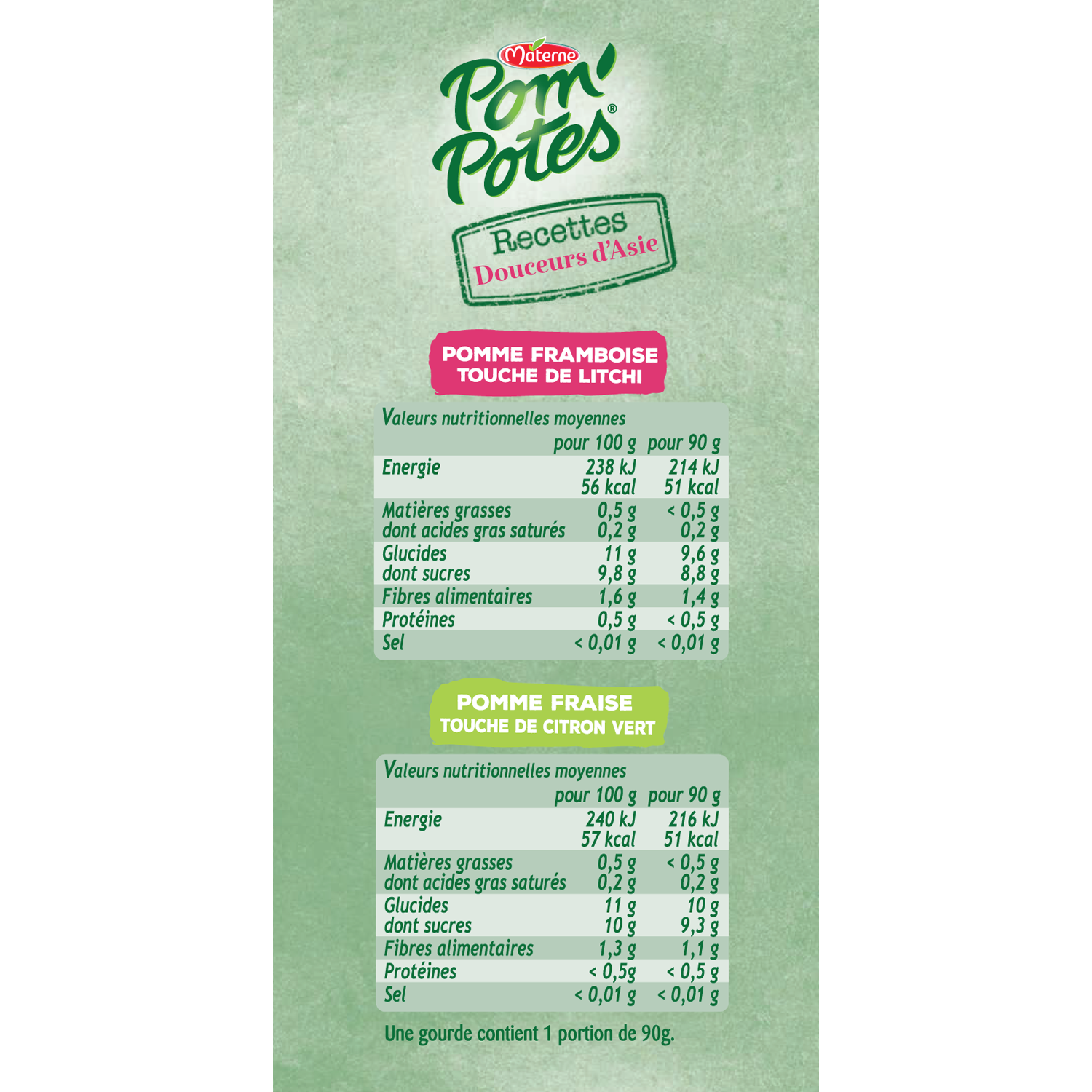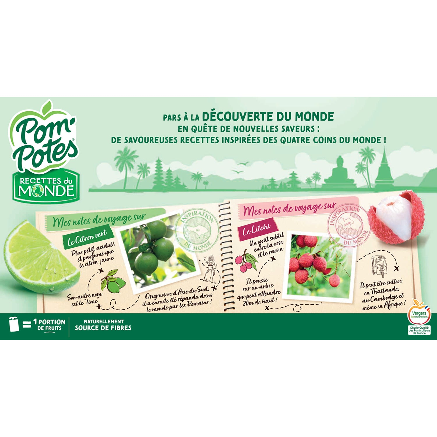 Pom'Potes® Recettes Du Monde: Endlich Fruchtbeutel für den großen Hunger! Pom'Potes lädt Sie ein, eine Pause einzulegen und dabei ein Rezept von anderswo zu genießen. - Ohne Zuckerzusatz (enthält von Natur aus Zucker) - Ohne künstliche Aromen - Nutriscore A - Ein Pom'Potes®-Beutel entspricht 1 der 5 täglich empfohlenen Portionen Obst und Gemüse