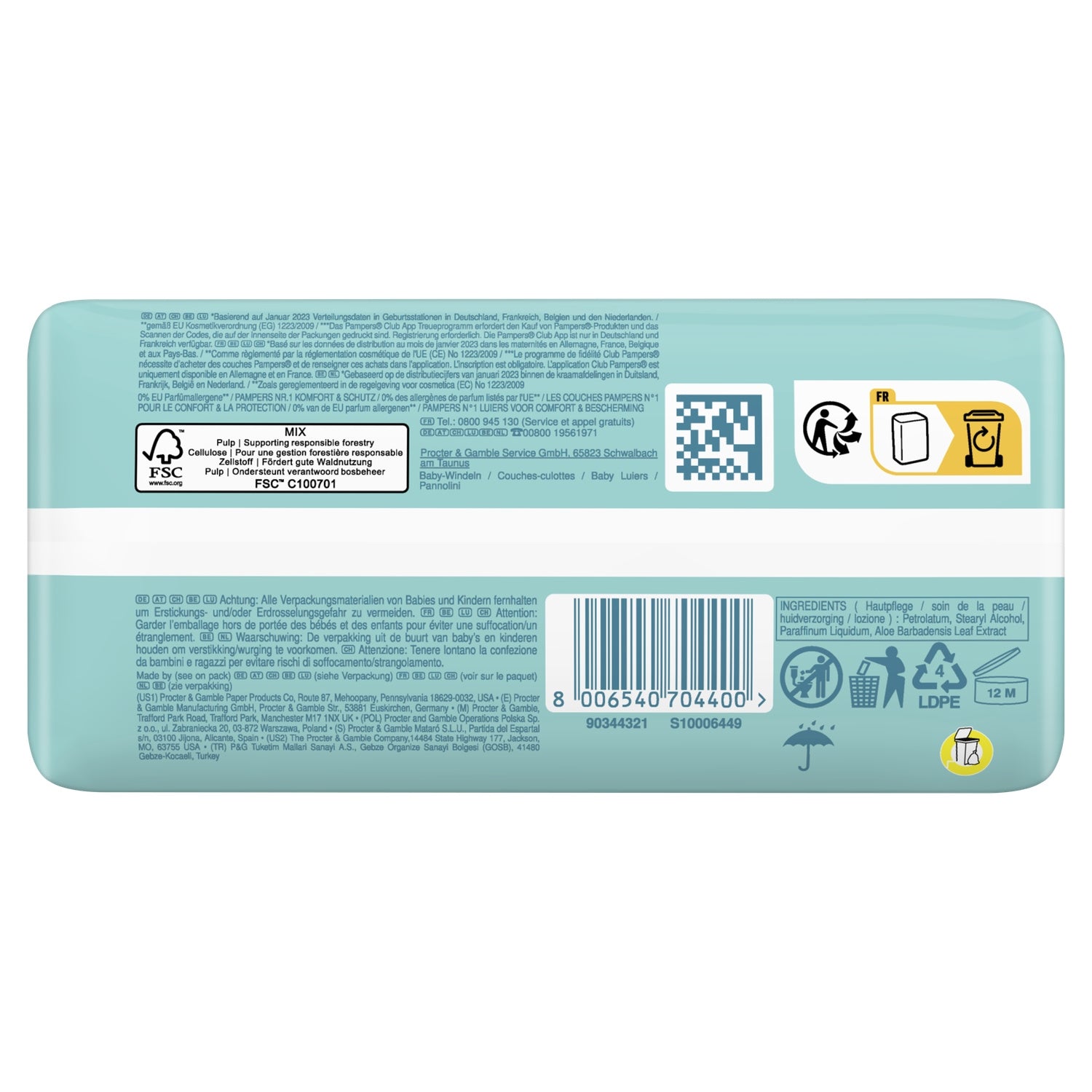 Die einzigartige Derma Comfort-Schicht bietet Pampers Komfort und Weichheit und leitet gleichzeitig Nässe und weichen Stuhl von der Haut weg. Millionen von Mini-Lüftungsöffnungen lassen die Luft frei in der Windel zirkulieren, um die Haut trocken zu halten. Bis zu 100 % Auslaufschutz dank eines einzigartigen Dreifach-Schutzsystems, das Flüssigkeit schnell aufnimmt und hilft, Auslaufen an Taille und Beinen zu verhindern. Ultraweiche Materialien hüllen Ihr Baby in eine Wolke aus Komfort und Schutz. Ultraweiche Stretch-Seiten passen sich sanft dem Bauch Ihres Babys an, um Hautreizungen vorzubeugen. Der Urinindikator wird blau, wenn die Windel gewechselt werden muss. Der spezielle Nabelschnurausschnitt schützt den empfindlichen Bauch Ihres Neugeborenen. Dermatologisch getestet und 0 % der in der EU aufgeführten Duftstoffallergene