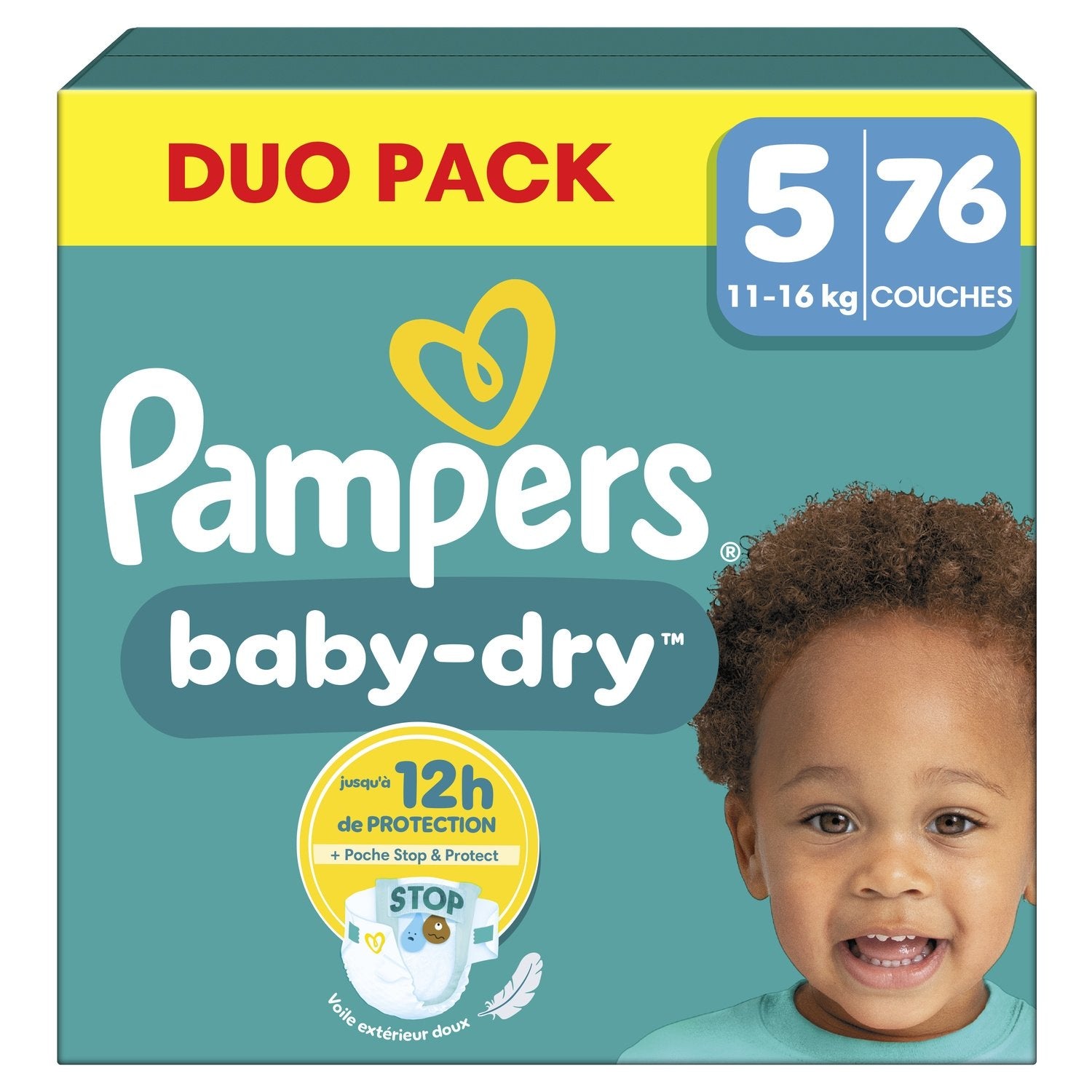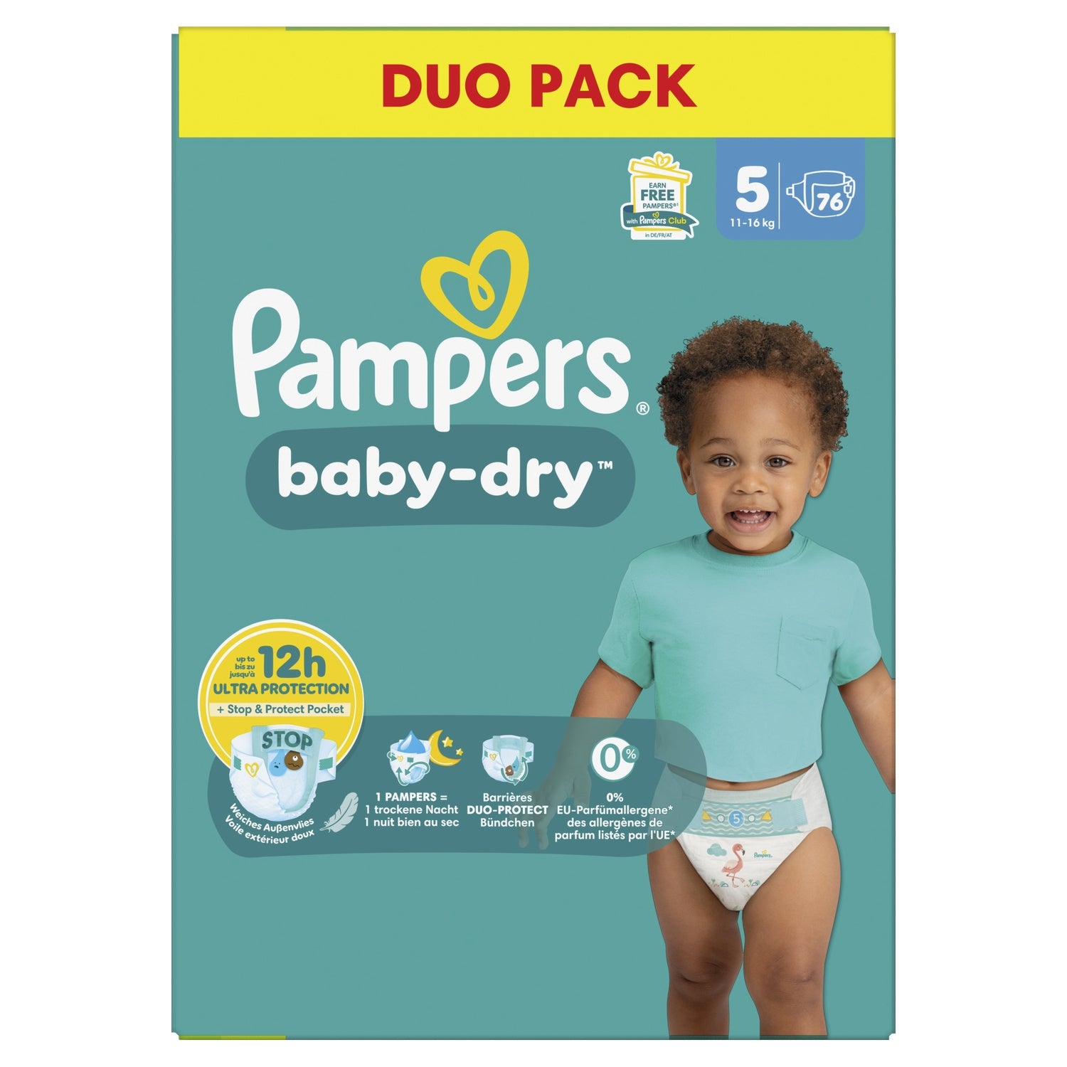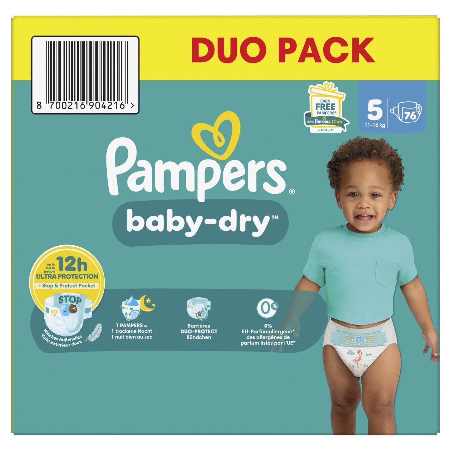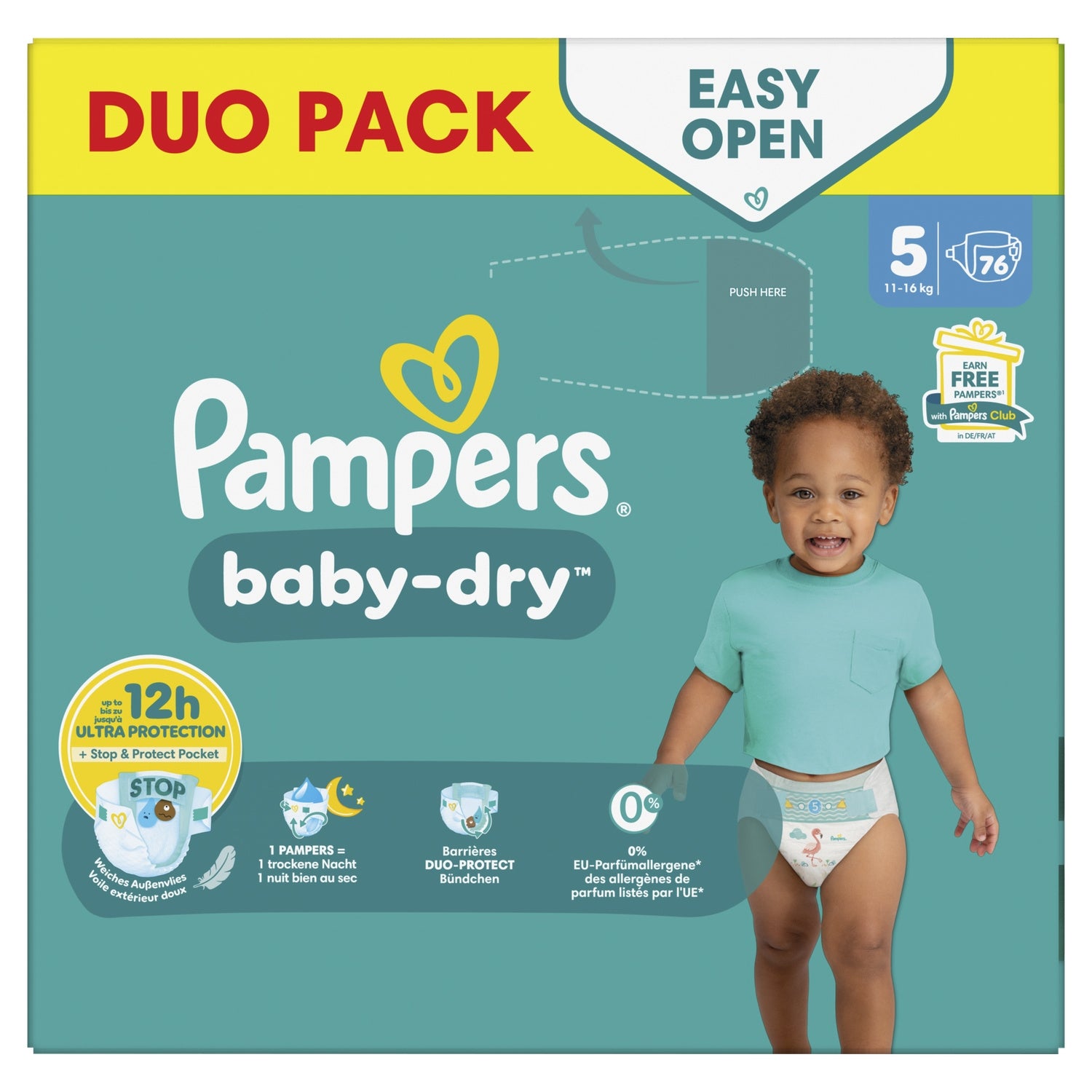Pampers Baby-Dry Größe 5, 76 Windeln, 11kg-16kg, Bis zu 100% auslaufsicherer Komfort