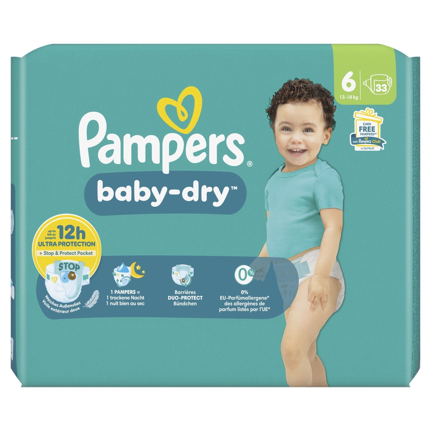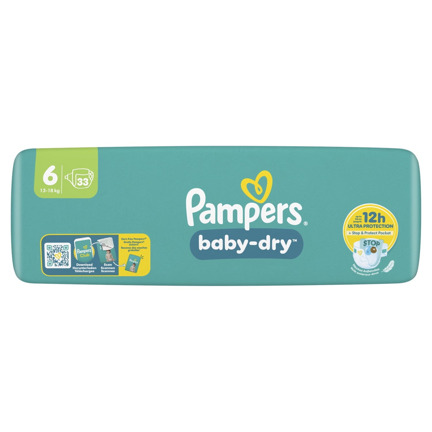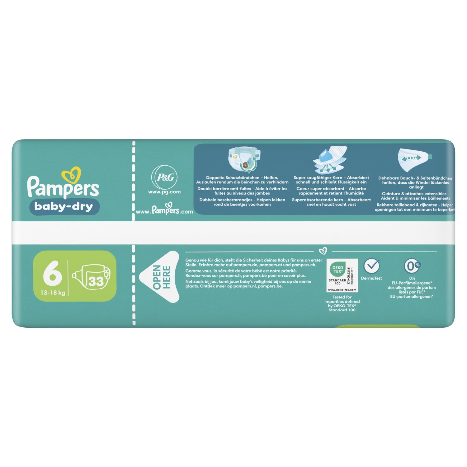 Pampers Baby-Dry Größe 6, 33 Windeln, 13kg-18kg, Bis zu 100% auslaufsicherer Komfort