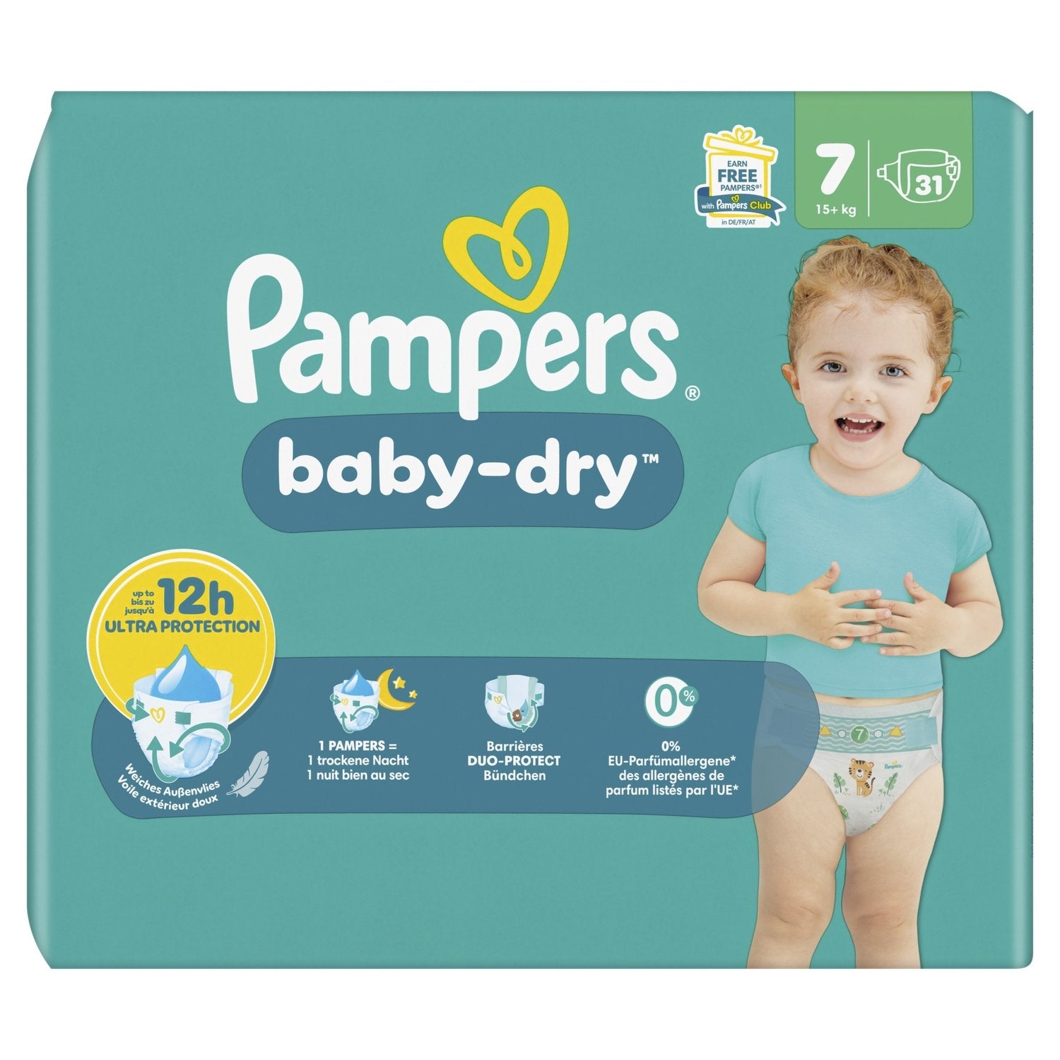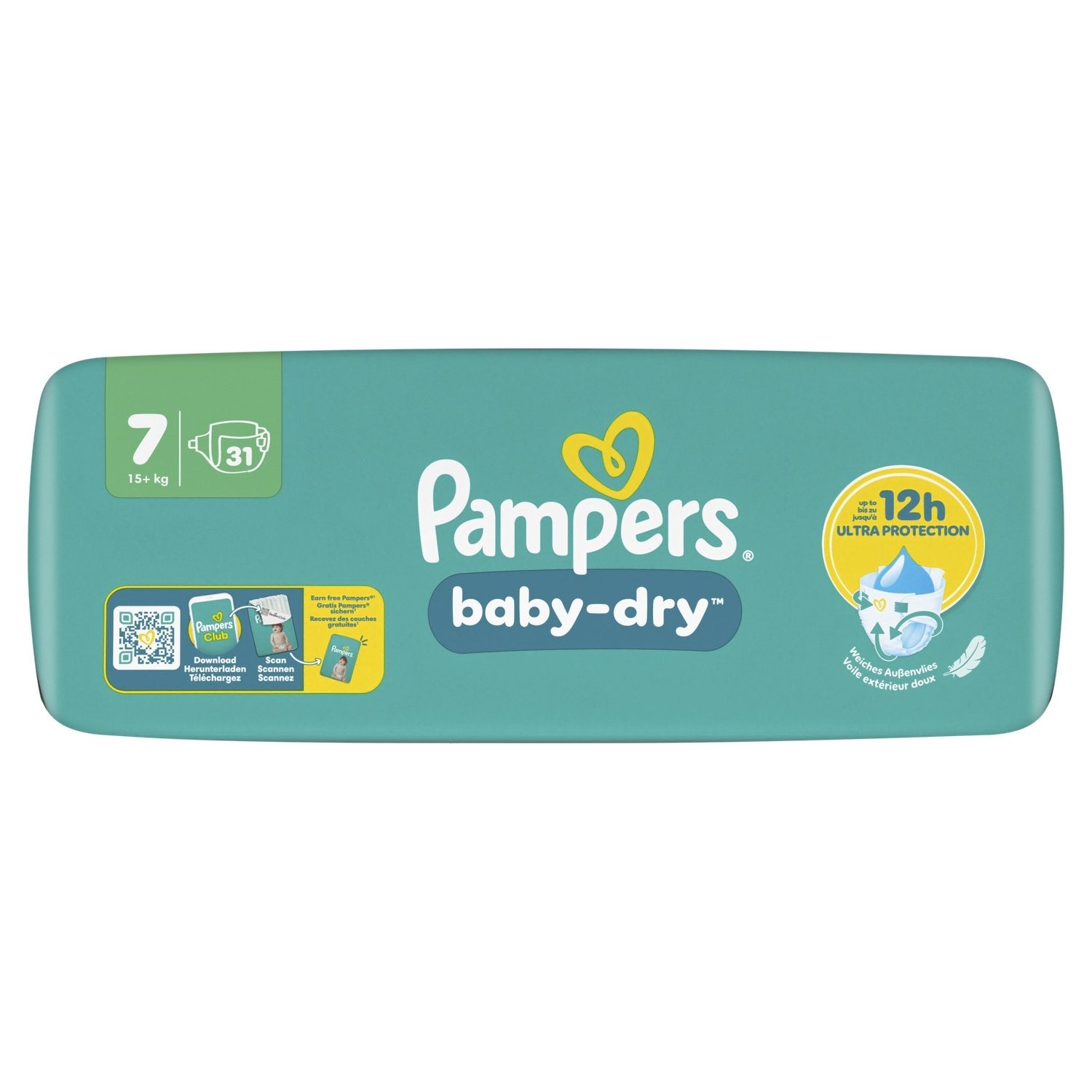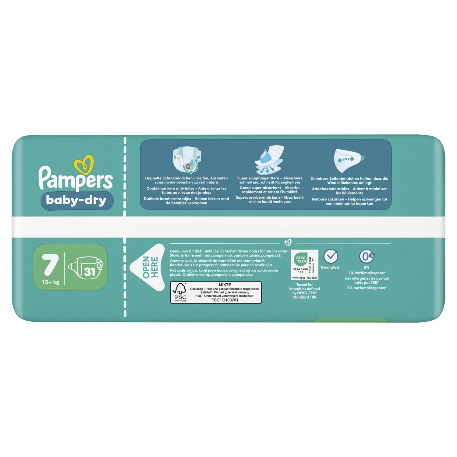 Pampers Baby-Dry Größe 7, 31 Windeln, 15 kg+, Bis zu 100 % auslaufsicherer Komfort