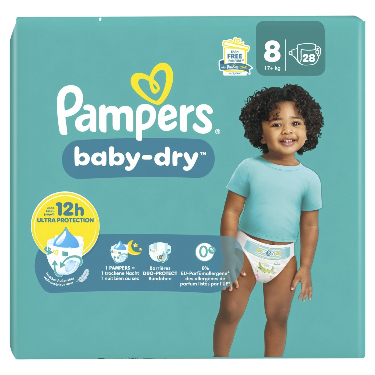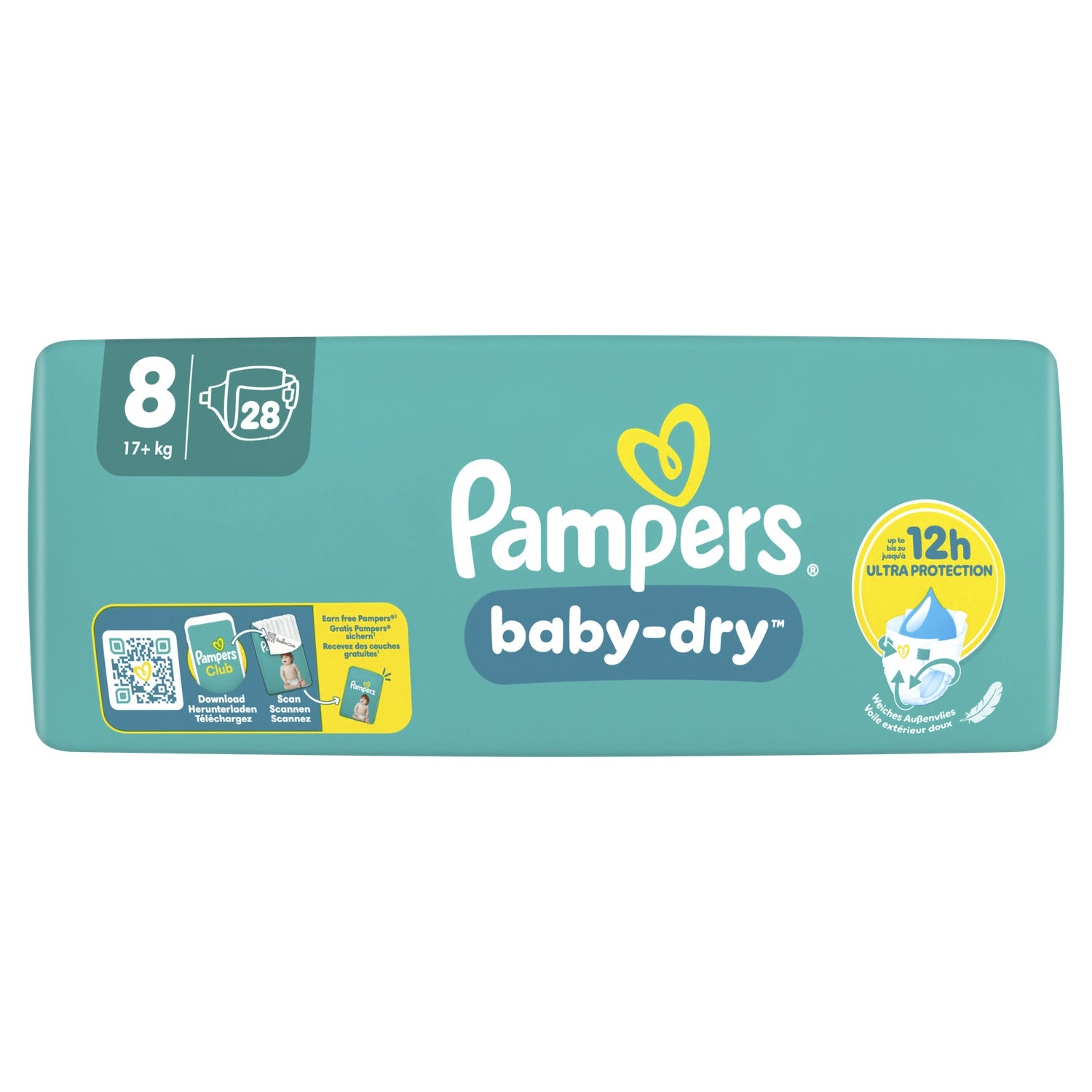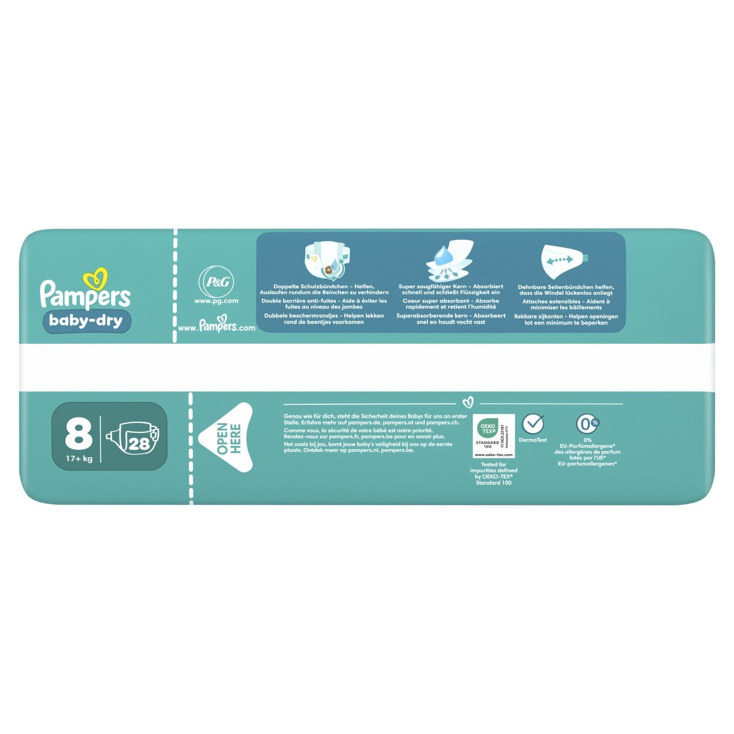 Pampers Baby-Dry Größe 8, 28 Windeln, 17 kg+, bis zu 100 % auslaufsicherer Komfort