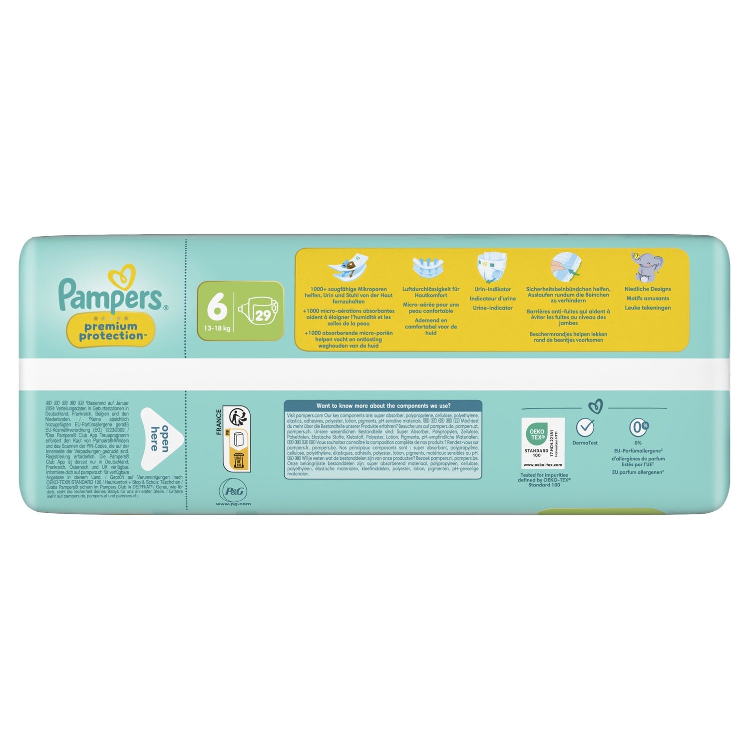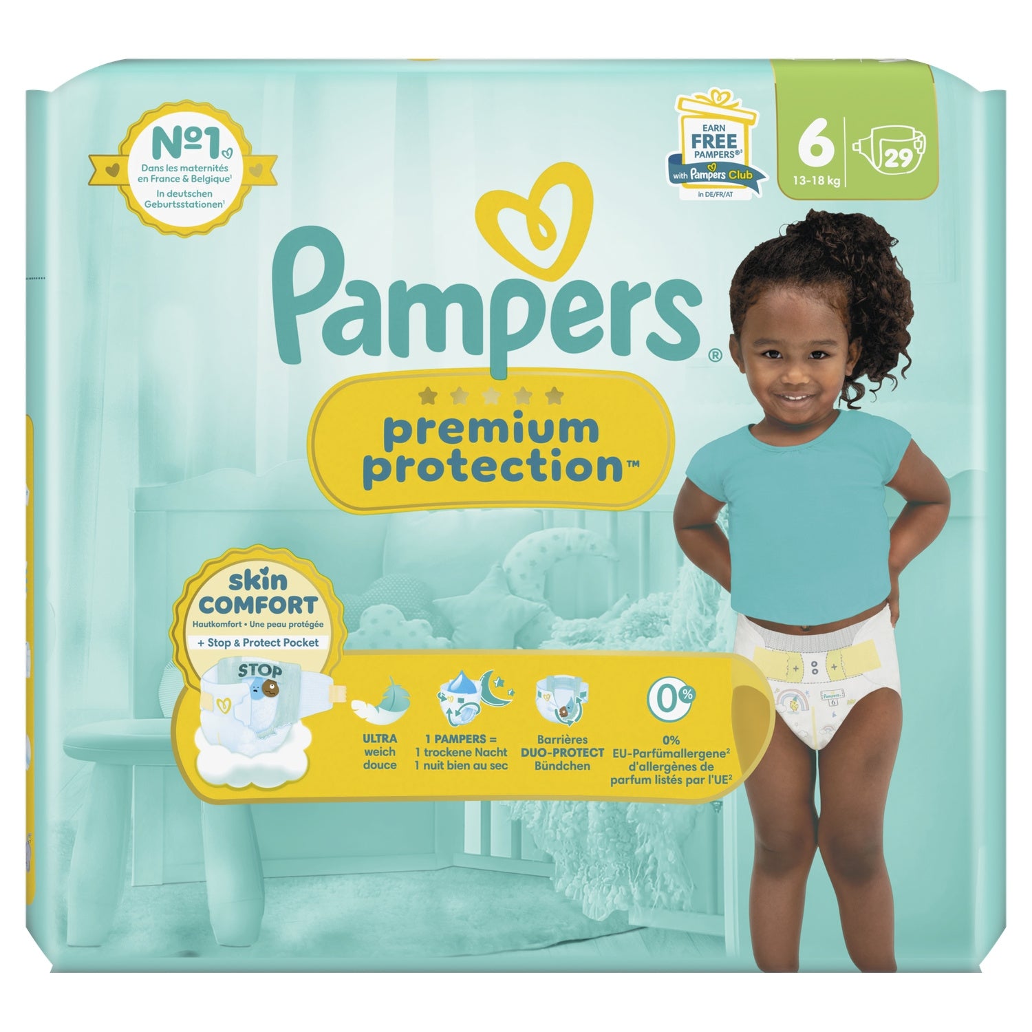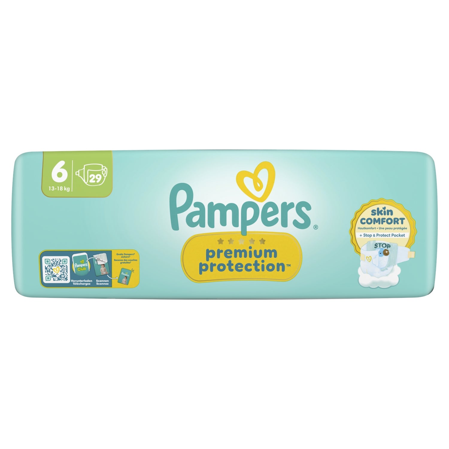 Pampers Premium Protection Größe 6, 29 Windeln, 13kg-18kg, Doppelhaut & Auslaufschutz