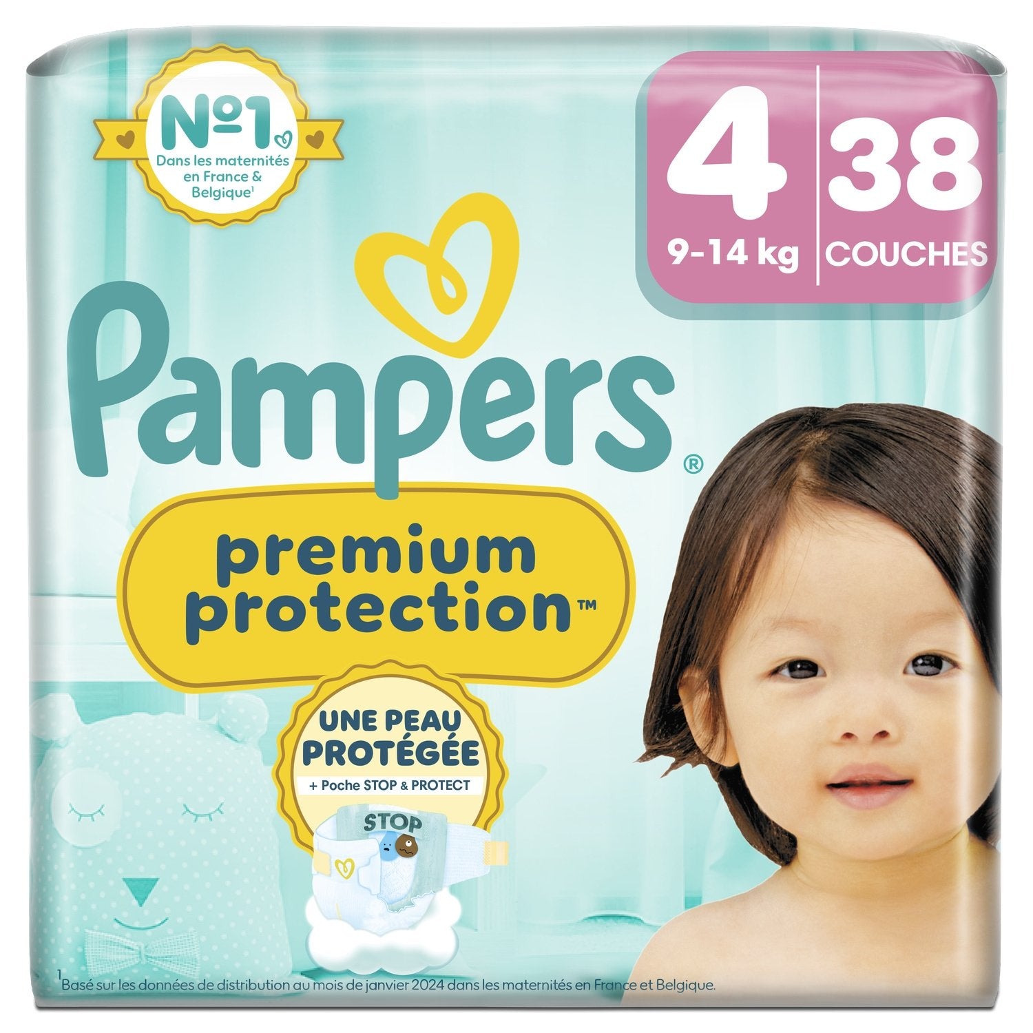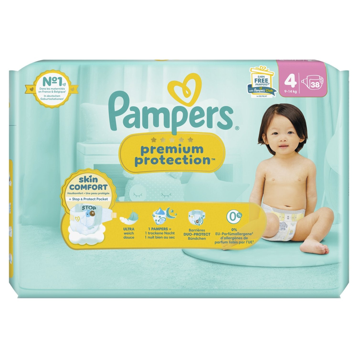 Pampers Premium Protection Größe 4, 38 Windeln, 9kg-14kg, Doppelhaut & Auslaufschutz