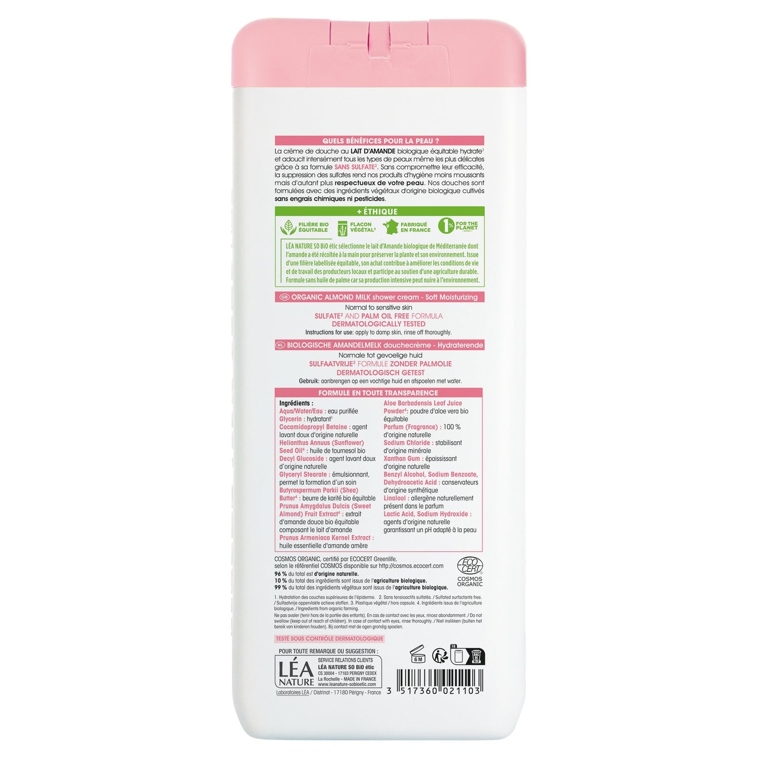 Die Bio-Mandelmilch-Duschcreme SO'BiO étic spendet dank ihrer sulfatfreien* Formel intensiv Feuchtigkeit und macht alle Hauttypen, selbst die empfindlichsten, weich.
