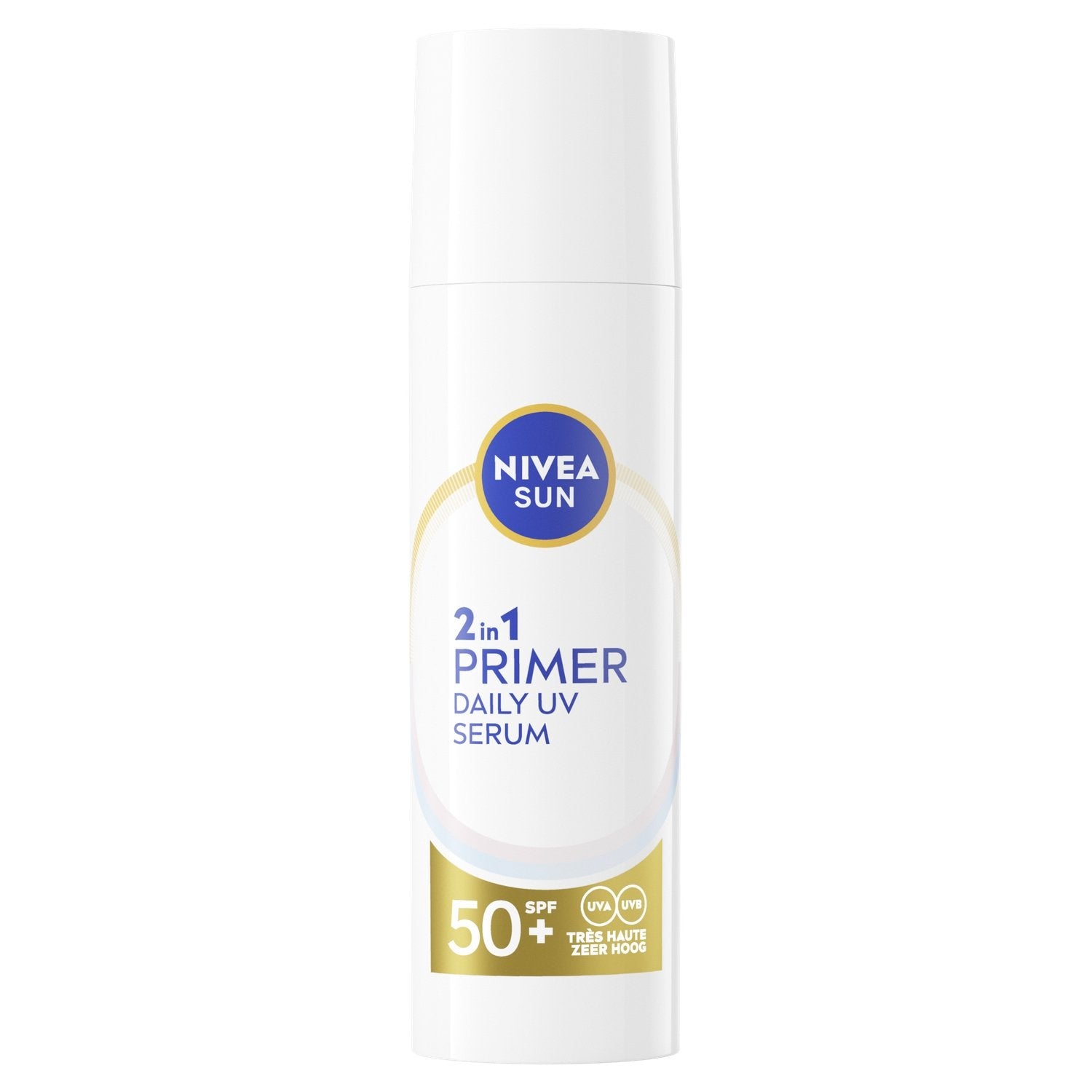 NIVEA SUN UV Specialist 2in1 Primer Daily UV Serum SPF 50+ wurde speziell entwickelt, um die Gesichtshaut in Sekundenschnelle zu schützen und zu glätten. Dieser innovative, leichte Sonnenschutz schützt gesunde Haut vor UVA-/UVB-Strahlen und den Auswirkungen von hochenergetischem sichtbarem Licht, wie beispielsweise vorzeitiger Hautalterung. Er ist mit zwei Arten von Hyaluronsäure und Licochalcon A, einem starken Antioxidans, angereichert. Während die Formel mit langkettiger Hyaluronsäure die oberen Hautschichten mit Feuchtigkeit versorgt, dringt kurzkettige Hyaluronsäure tiefer in die Haut ein.