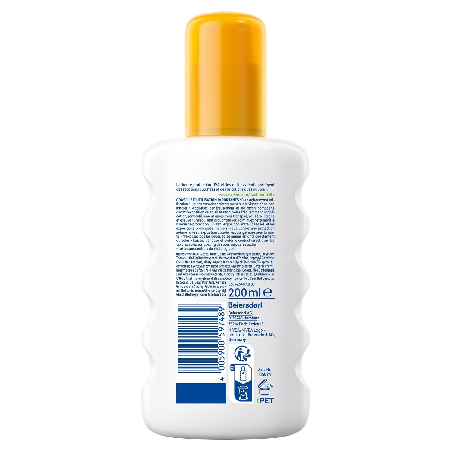 NIVEA SUN Sensitive Sofortschutz Sonnenschutzspray LSF 50+ schützt empfindliche Haut vor Sonneneinstrahlung und Sonnenallergien. Hoher UVA-/UVB-Schutz und Antioxidantien schützen vor sonnenbedingten Hautreaktionen und -irritationen. Die Formel ist parfümfrei, leicht, nicht fettend und wasserfest und somit speziell für empfindliche Haut geeignet. Anwendung: Vor dem Sonnen großzügig und gleichmäßig auftragen. Regelmäßig wiederholen, insbesondere nach dem Schwitzen, Schwimmen und Abtrocknen. Hautverträglichkeit dermatologisch bestätigt.