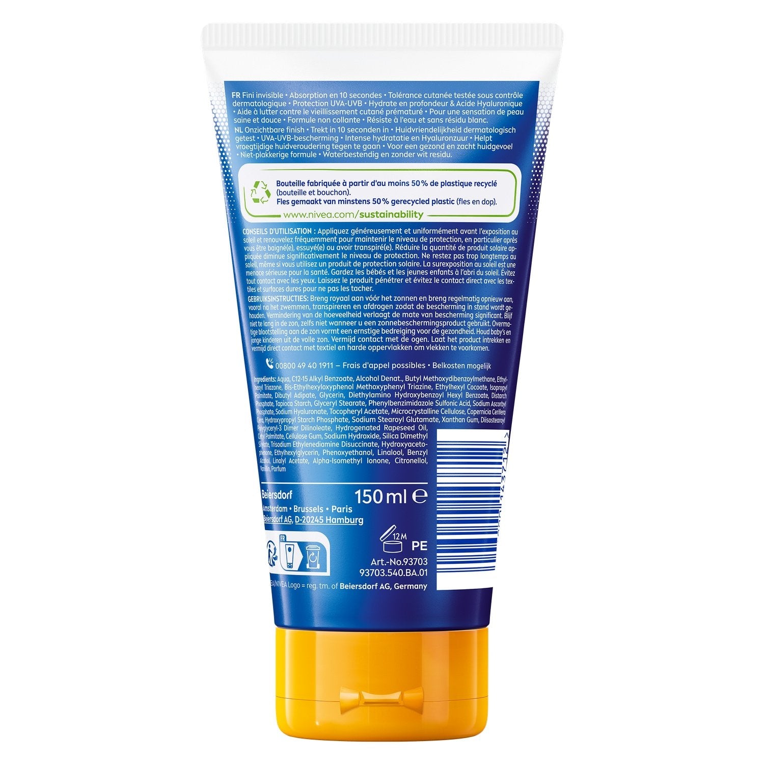 NIVEA SUN Invisible Finish Fluid Sonnenschutz LSF 50 mit unsichtbarem Finish, leichter und nicht klebender Textur, zieht in 10 Sekunden ein und schützt vor UVA- und UVB-Strahlen. Es spendet dank seiner Formulierung mit Hyaluronsäure tiefenwirksam Feuchtigkeit für ein gesundes und weiches Hautgefühl. Dieses Gesichtsfluid hilft zudem gegen vorzeitige Hautalterung. Hautverträglichkeit dermatologisch getestet. Seine Formel ist wasserfest und hinterlässt keine weißen Rückstände. Vor dem Sonnen großzügig und gleichmäßig auftragen und regelmäßig wiederholen, um den Schutz aufrechtzuerhalten, insbesondere nach dem Schwimmen, Abtrocknen oder Schwitzen.