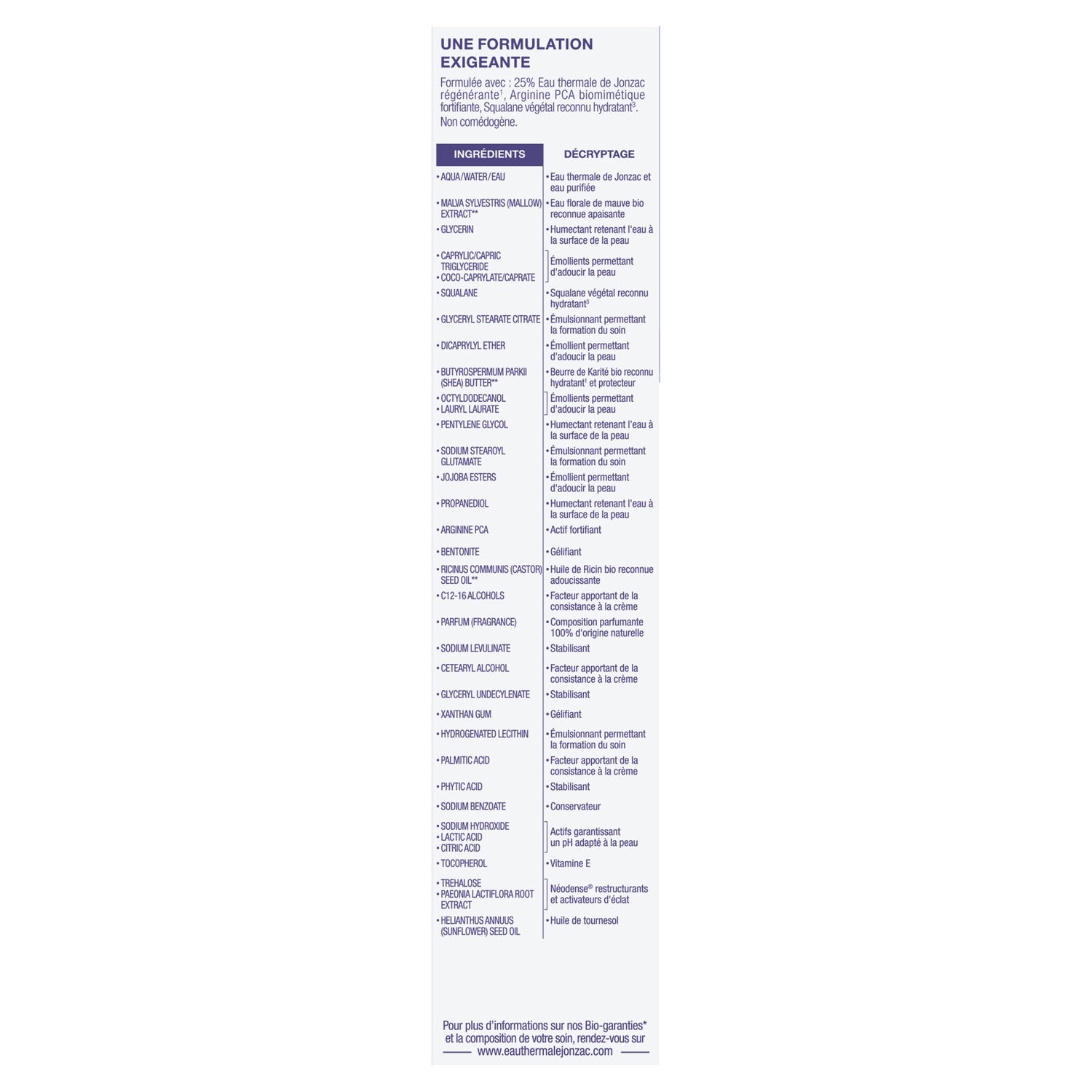 Formuliert mit: 25 % regenerierendem Jonzac-Thermalwasser – stärkendem biomimetischem Arginin PCA – anerkanntem feuchtigkeitsspendenden pflanzlichen Squalan. Nicht komedogen, hohe Verträglichkeit, vegan², hergestellt in Frankreich.