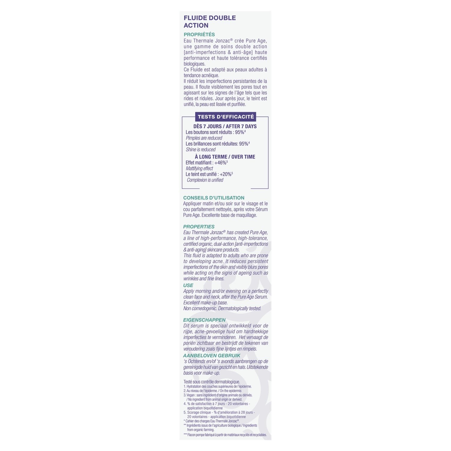Es reduziert und korrigiert hartnäckige Hautunreinheiten. Es verfeinert sichtbar die Poren und wirkt gleichzeitig auf Zeichen der Hautalterung wie Fältchen und feine Linien. Tag für Tag wird der Teint ebenmäßiger, die Haut ausgeglichener und gereinigter.