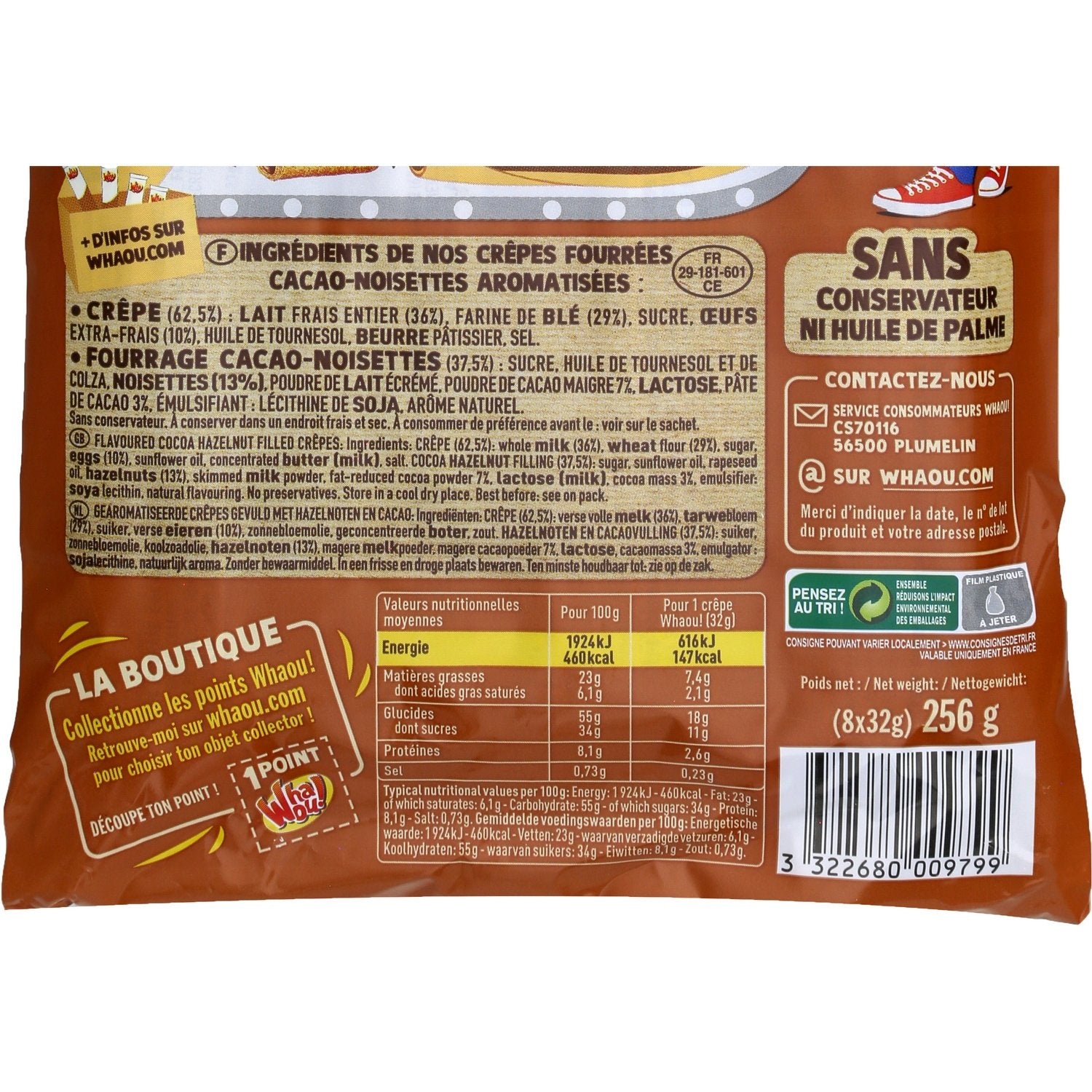 Ein köstlicher Pfannkuchen mit köstlichem Schokoladen-Haselnuss-Geschmack, ohne Palmöl und Konservierungsstoffe, zubereitet mit täglich frischer Milch und extra frischen Eiern. Der WOW! Pfannkuchen ist in seinem Frischebeutel leicht zu transportieren und begleitet Ihre Kinder bei ihren zahlreichen Aktivitäten.