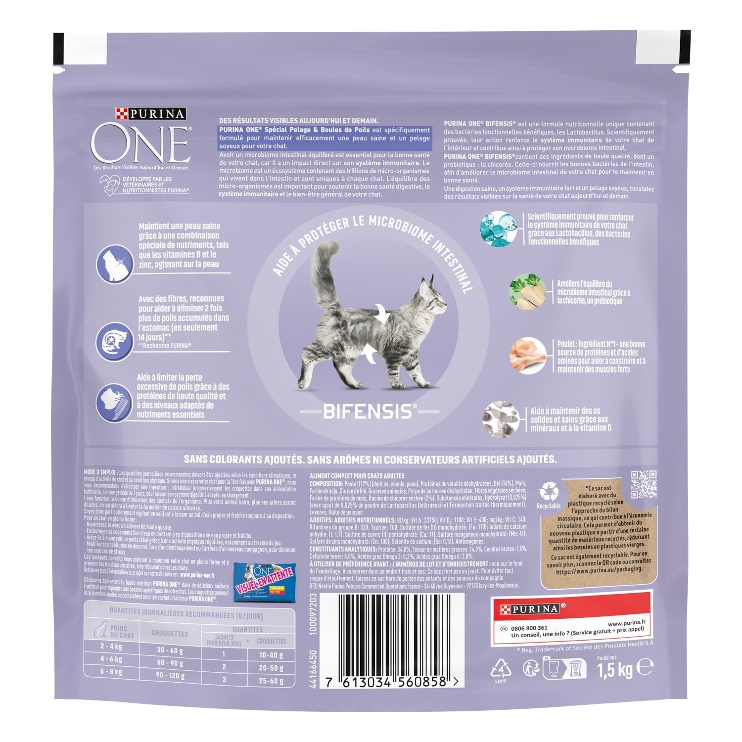 Alleinfuttermittel für erwachsene Katzen. 2x mehr Haare werden in nur 14 Tagen aus dem Magen entfernt* *PURINA® Forschung.,Hilft, übermäßigen Haarausfall mit hochwertigem Protein und angemessenen Mengen an essentiellen Nährstoffen zu begrenzen.,Huhn: Zutat Nr. 1 – eine gute Protein- und Aminosäurequelle zum Aufbau und Erhalt starker Muskeln. Keine zusätzlichen Farbstoffe. Keine zusätzlichen künstlichen Aromen oder Konservierungsstoffe.,Verbessert das Gleichgewicht des Darmmikrobioms mit Chicorée, einem Präbiotikum. Erhält gesunde Haut mit einer speziellen Kombination von Nährstoffen wie B-Vitaminen und Zink, die auf die Haut wirken
