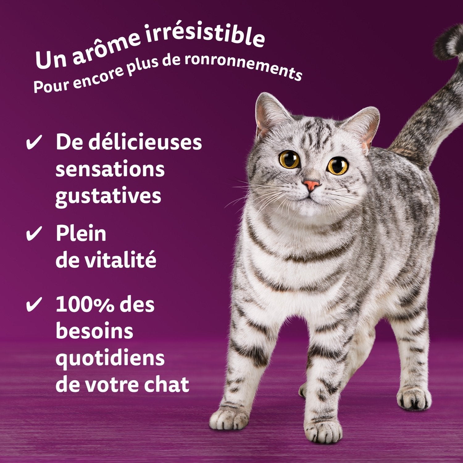 WHISKAS Aromatic Fusion of Flavors Frischebeutel sind Rezepte, die für köstliche Geschmackserlebnisse entwickelt wurden. Alle unsere Rezepte enthalten eine verlockende Mischung aus Zutaten, die die Geschmacksknospen Ihrer Katze bei jeder Mahlzeit erfreuen! Tanken Sie Vitalität für Ihre Katze. Mit allem, was Ihre Katze braucht, um voller Vitalität zu bleiben, einschließlich B-Vitaminen und einem ausgewogenen Mineralstoffgehalt. Wussten Sie, dass 80 % des Geschmacks vom Geruch herrühren? Deshalb haben wir eine Welt köstlicher aromatischer Mahlzeiten für Ihre Katzen geschaffen, die sie jedes Mal zu ihrem Napf eilen lassen. Speziell ausgewählte Zutaten werden mit Aromen angereichert, die nachweislich die Sinne von Katzen erfreuen, und das Ganze wird mit einer großzügigen Schicht herzhafter Soße serviert. Jede Mahlzeit schmeckt so gut, wie sie riecht – ein unwiderstehliches Aroma für noch mehr Schnurren. Wir setzen uns dafür ein, unsere Umweltbelastung zu reduzieren. Um mehr über unsere Fortschritte zu erfahren, besuchen Sie unsere Website. Diese Box ist vollständig recycelbar. Der in unseren Rezepten verwendete Fisch stammt aus verantwortungsvollen Quellen.