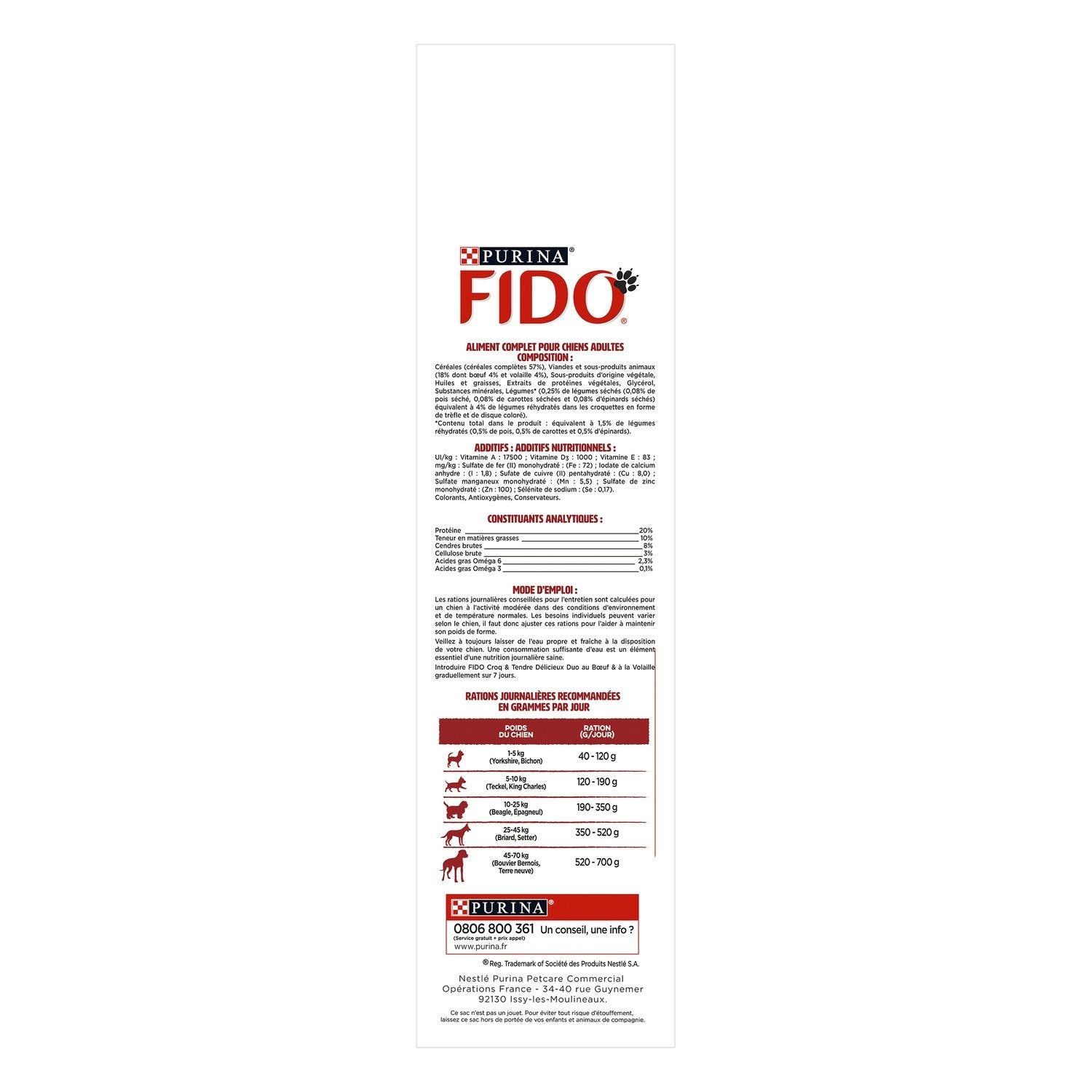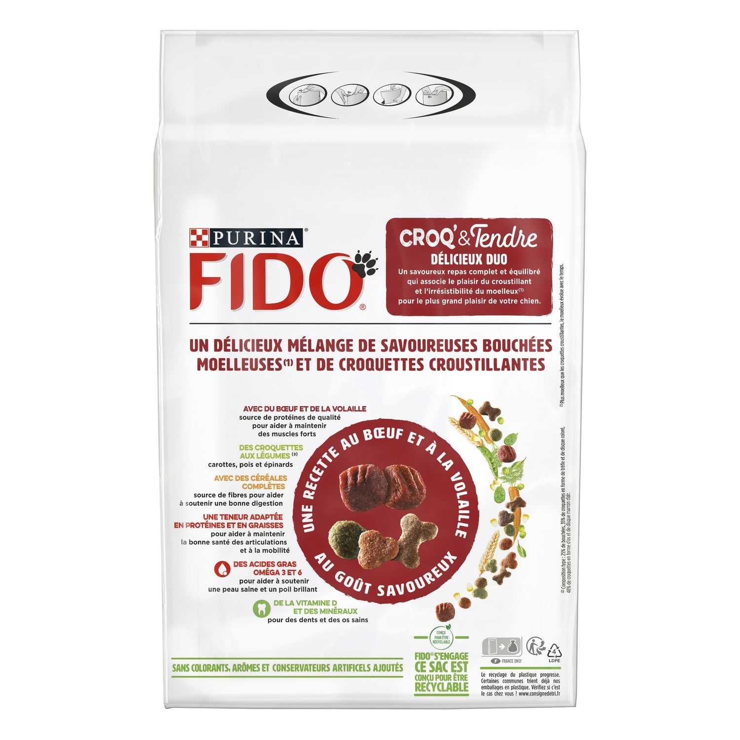 FIDO Croq' & Tendre Délicieux Duo ist eine leckere Mahlzeit, die den Genuss von Knusprigkeit und unwiderstehlicher Weichheit (2) vereint – für den größten Genuss Ihres Hundes. Und immer 100 % vollständig und ausgewogen! (2) Weicher als knuspriges Trockenfutter, die Weichheit entwickelt sich mit der Zeit.