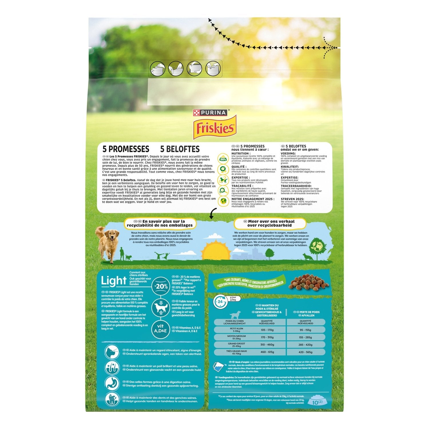 Die 5 Versprechen von FRISKIES® Von dem Tag an, an dem Sie Ihren Hund in Ihrem Zuhause willkommen hießen, sind Sie eine Verpflichtung eingegangen, ein Versprechen, sich um ihn zu kümmern, ihn gut zu ernähren. Bei FRISKIES® haben wir dasselbe Versprechen gegeben. Seit über 50 Jahren ernährt FRISKIES® Generationen glücklicher und gesunder Hunde mit leckerem, hochwertigem Futter. Das ist eine große Verantwortung. Genau wie Sie halten wir bei FRISKIES® unsere Verpflichtungen und 5 Versprechen sind uns wichtig: 1) Ernährung: Eine schmackhafte, 100 % vollständige und ausgewogene Rezeptur, hergestellt mit einer Mischung aus tierischen und pflanzlichen Proteinen, wie z. B. Getreide. 2) Qualität: Während unseres gesamten Produktionsprozesses werden täglich Hunderte von Kontrollen durchgeführt. 3) Fachwissen: Alle unsere Produkte werden von PURINA-Ernährungswissenschaftlern entwickelt. 4) Rückverfolgbarkeit: Unsere Rezepturen werden mit hochwertigen, sorgfältig ausgewählten Zutaten von vertrauenswürdigen Lieferanten zubereitet. 5) Unsere Verpflichtung für 2025: Wir verpflichten uns, unsere Verpackungen bis 2025 zu 100 % recycelbar oder wiederverwendbar zu machen. Alle FRISKIES®-Rezepte sind frei von künstlichen Farb-, Geschmacks- und Konservierungsstoffen.