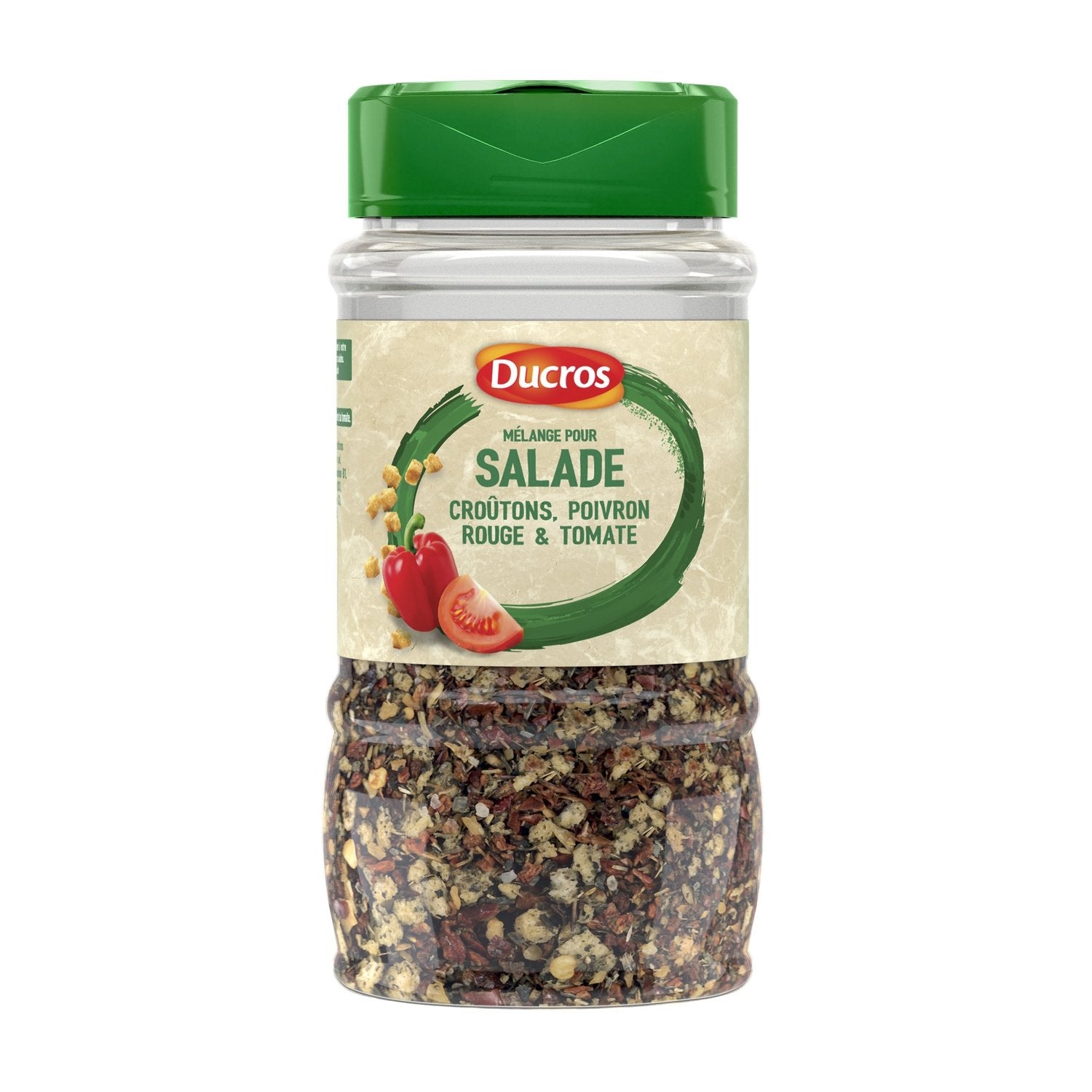 Ducros hat diese köstliche Mischung aus Croutons, roten Paprika und Tomaten für Sie kreiert, um all Ihren Salaten Biss und Geschmack zu verleihen! Mit diesem großen, praktischen und cleveren Format können Sie vielen grünen oder gemischten Salaten im Handumdrehen eine besondere Geschmacksnote verleihen!