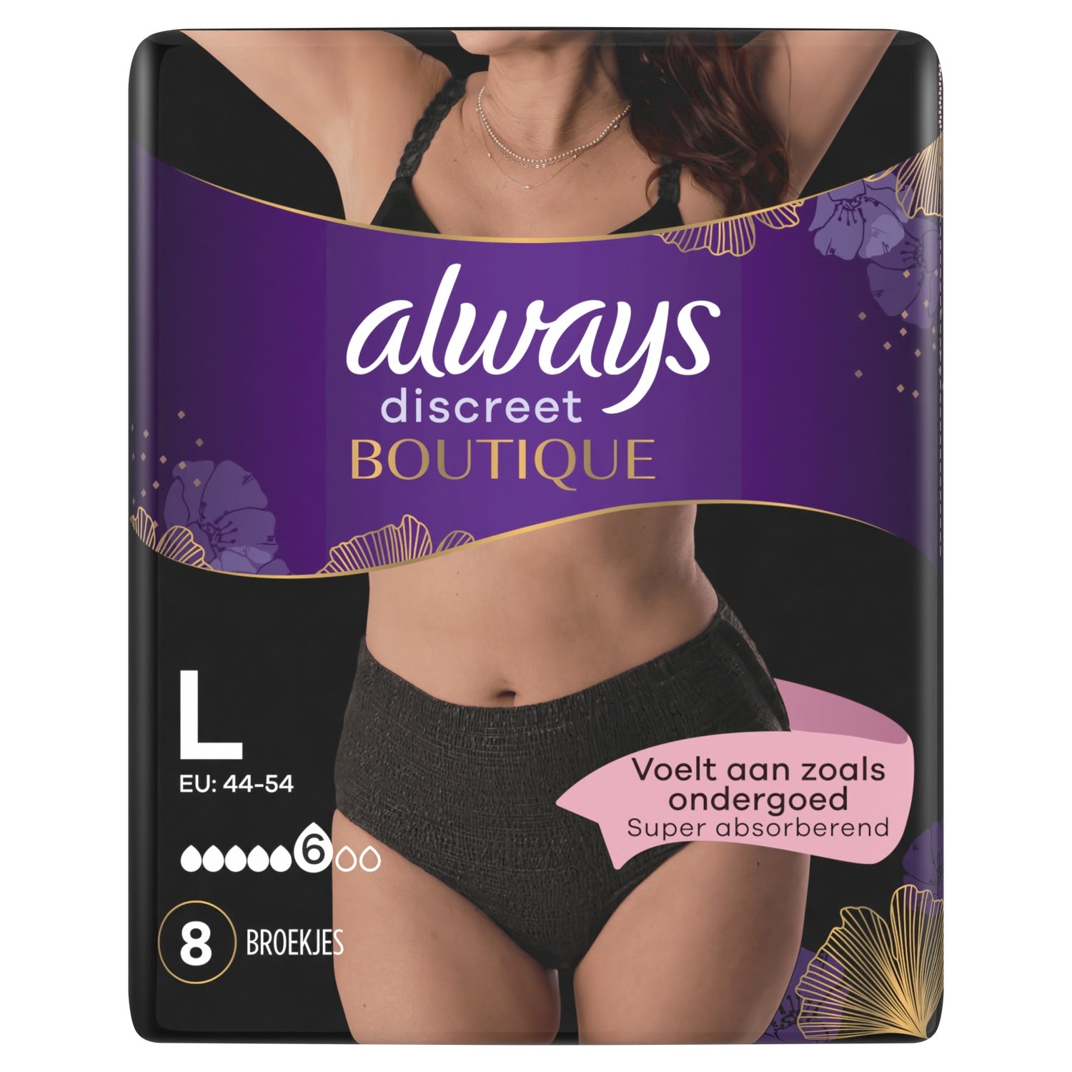 Always Discreet Boutique Inkontinenz-Slips, Schwarz Plus L, x8 Slips, Echtes Unterwäschegefühl, Super saugfähig, Körperangepasstes Design