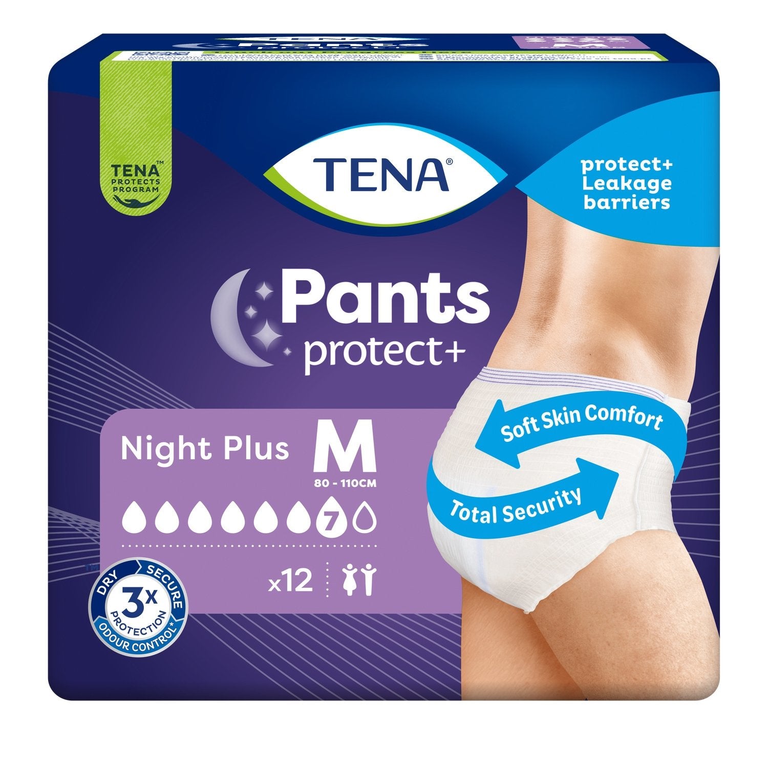 TENA Pants protect+ Plus Night sind hochwertige, saugfähige Unisex-Unterhosen, die bis zu 100 % Sicherheit bei mittelschwerer bis schwerer Blasenschwäche in der Nacht bieten. Ihre doppelte Saugfähigkeit und der weiche Kern sorgen für maximalen Komfort und ruhige Nächte. Diese saugfähige Einwegunterhose gehört zu unseren saugstärksten Höschen und ist für die Nacht geeignet – für Frauen und Männer. Die hochwirksamen protect+ Gummizüge und der Auslaufschutz bieten zusätzliche Sicherheit und sorgen für Frische, Sicherheit und ein gutes Gefühl. Flüssigkeit wird im Kern eingeschlossen und von der Oberfläche ferngehalten – für mehr Komfort und erholsamere Nächte. Der saugfähige Kern neutralisiert Gerüche sofort und sorgt so für maximale Sicherheit und Diskretion. Dank ihrer eng anliegenden Passform bieten TENA Pants protect+ Plus Night optimalen Tragekomfort und sind hautfreundlich. Das mikroventilierte Stretchmaterial sorgt für ein sicheres Gefühl und einen erholsameren Schlaf. Dank des TENA Dreifachschutzes gegen Auslaufen, Geruch* und Nässe sorgt diese Unterwäsche für maximale Sicherheit. TENA Pants protect+ Plus Night ist hautfreundlich, effektiv und weich und trägt so zur Hautgesundheit bei. TENA Pants protect+ Plus Night bietet dank Ammoniakneutralisationstechnologie Frische, Sicherheit und Geruchskontrolle* und sorgt für maximalen Komfort, Schutz und Sicherheit für ruhige Nächte. Ergänzen Sie Ihre TENA Pants protect+ Night mit TENA Pants protect+ Day für umfassenden Schutz bei Tag und Nacht. TENA gibt Ihnen Sicherheit und lässt Sie freier leben. Unsere Produkte basieren auf Vertrauen, Zuverlässigkeit und Wirksamkeit und bieten überlegenen Schutz und lang anhaltenden Komfort. *durch Ammoniakneutralisation.