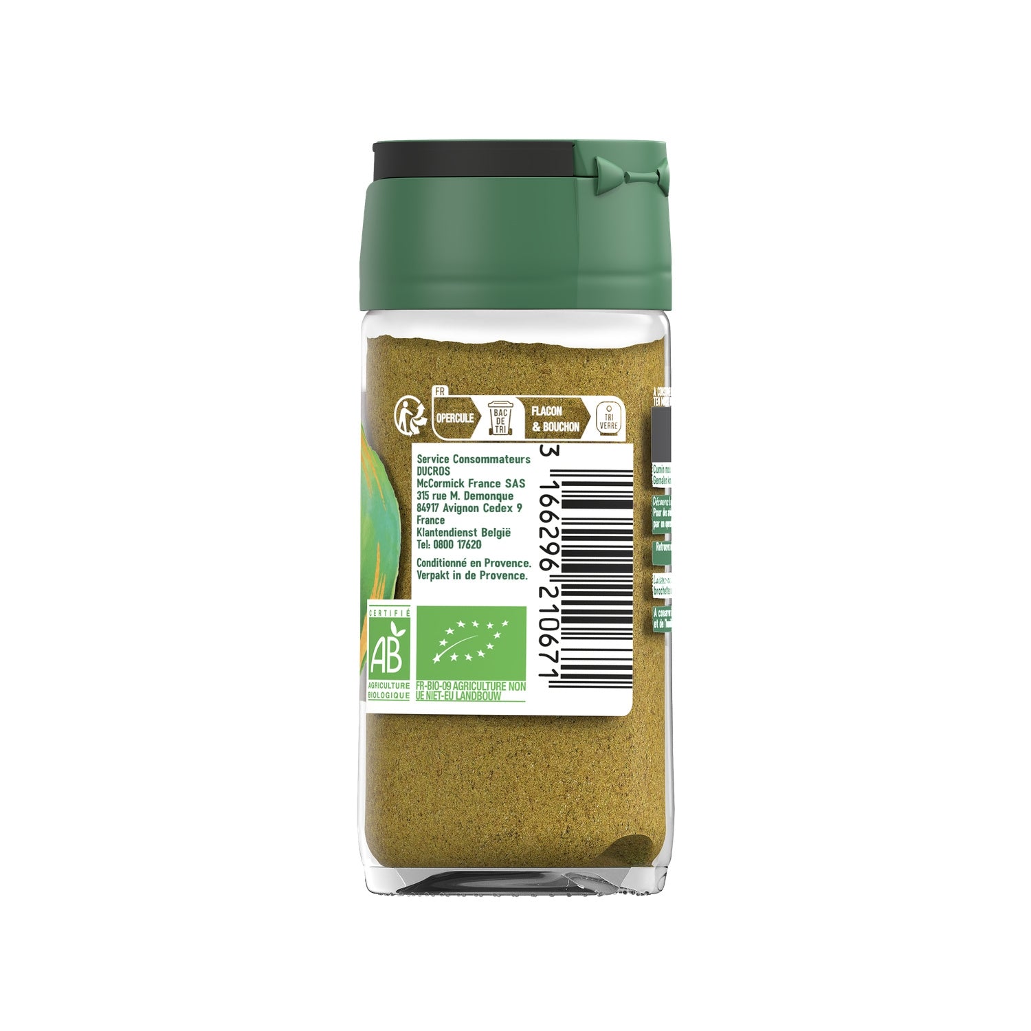 Entdecken Sie das Bio-Sortiment von Ducros! Um sein Aroma zu bewahren, ist dieser Kreuzkümmel durch ein Frischesiegel geschützt.