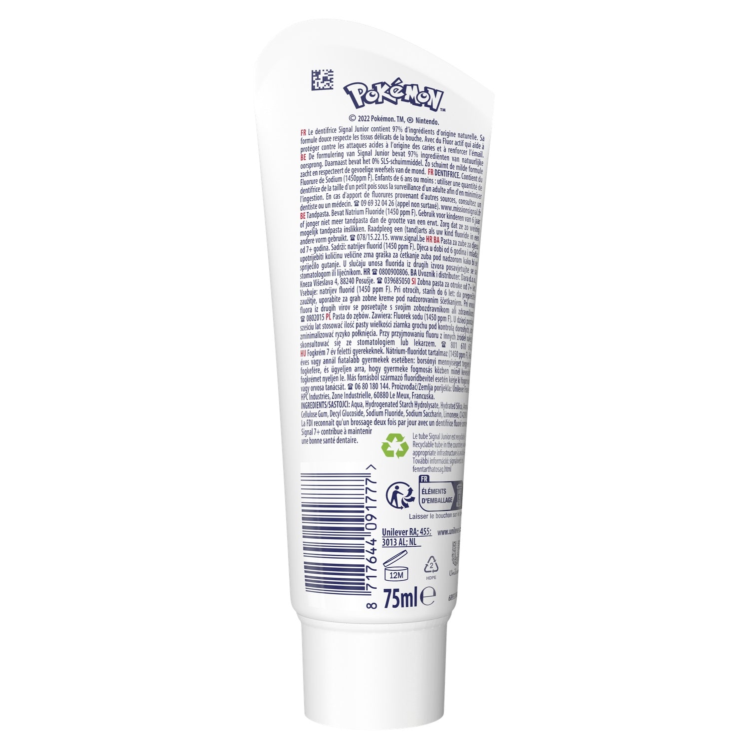 Pokémon Signal Sweet Mint Kinderzahnpasta, für Kinder ab 7 Jahren, 75 ml Größe, Fluorid-Zahnpasta, die als Schutzschild gegen Zuckersäuren wirkt und die Zähne vor Karies schützt, Mit Natriumfluorid angereicherte Kinderzahnpasta, deren Dosierung für Kinder ab 7 Jahren geeignet ist, um die ersten bleibenden Zähne zu stärken und den Zahnschmelz zu kräftigen, Zahnpastaformel mit 97 % Inhaltsstoffen natürlichen Ursprungs, um das empfindliche Gewebe im Mund zu schonen, Drücken Sie die Zahnpastatube vollständig recycelbar aus und geben Sie sie zum Recycling an einer TerraCycle®-Sammelstelle ab, Signal-Tipps für eine gute Mundhygiene: Putzen Sie Ihre Zähne nach jeder Mahlzeit, wechseln Sie Ihre Zahnbürste alle 2 bis 3 Monate und gehen Sie zweimal im Jahr zum Zahnarzt