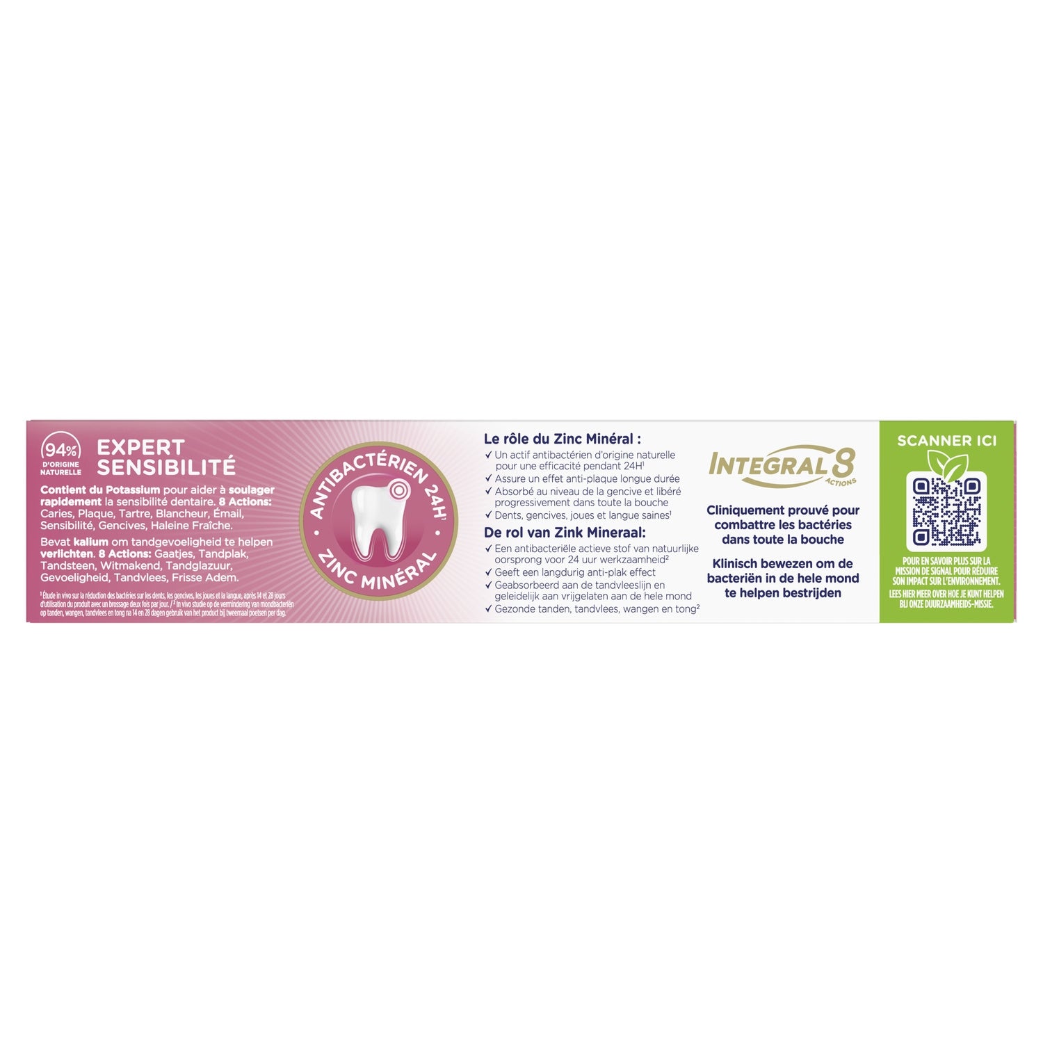 Expert Sensitivity Zahnpasta Signal Integral 8, 75 ml Tube, Beruhigende Pflegezahnpasta mit Kalium zur schnellen Linderung empfindlicher Zähne, Hergestellt aus 94 % natürlichen Inhaltsstoffen und angereichert mit dem Mineral Zink für eine 18 Stunden wirksame Zahnpasta gegen Zahnstein und Bakterien, Mineral Zink wird am Zahnfleischrand absorbiert und nach und nach im gesamten Mundraum freigesetzt für gesunde Zähne, Zunge, Wangen und Zahnfleisch nach dem Zähneputzen, Klinisch erprobte Formel mit 8 Wirkungen: Kariesschutz, Stärkung von Zahnfleisch und Zahnschmelz, aufhellende Wirkung, frischer Atem, Anti-Plaque, Anti-Zahnstein und antibakteriell, Die Quetschtube der Zahnpasta ist zu 100 % recycelbar, geben Sie sie zum Recycling an einer TerraCycle®-Sammelstelle ab