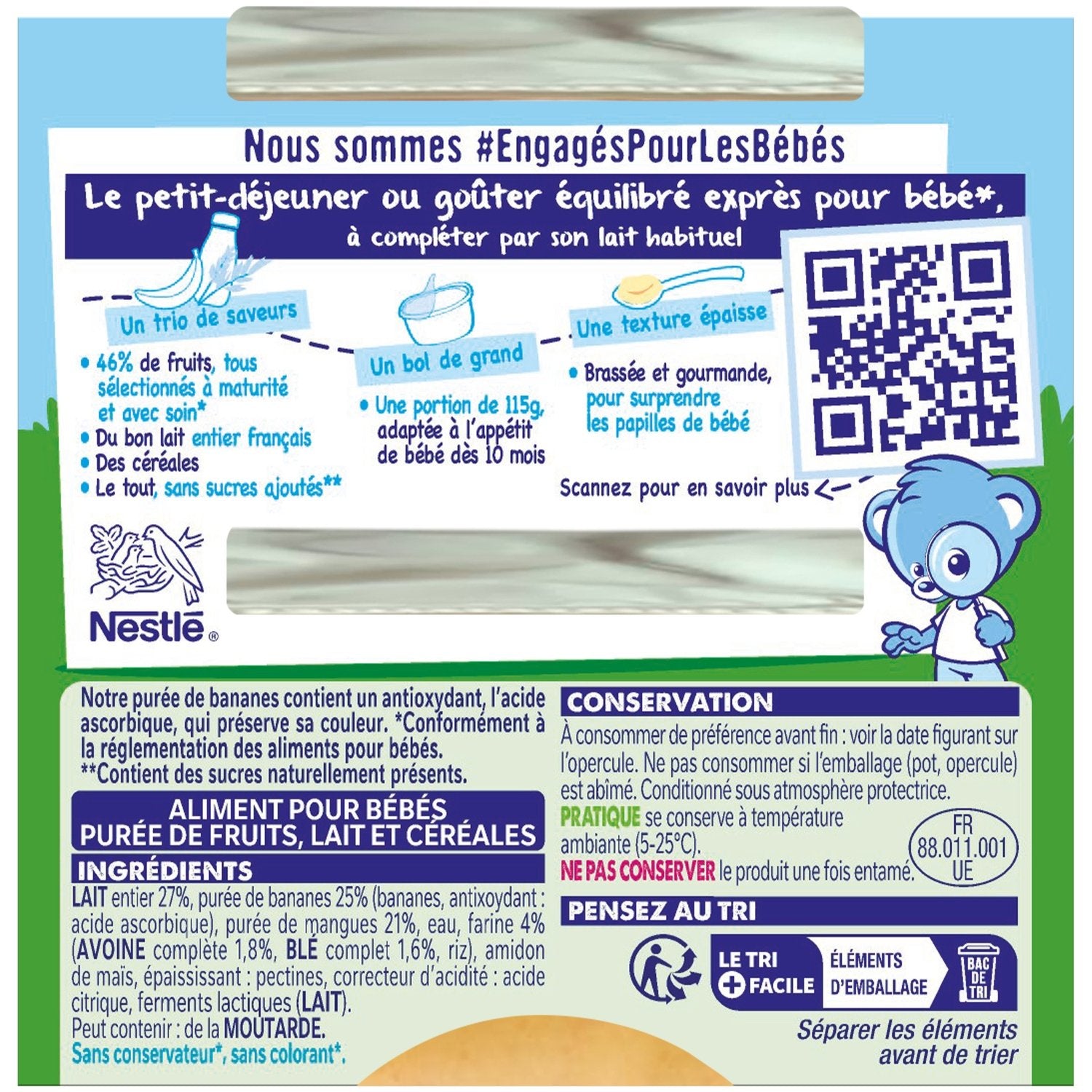 Babydessert ab 10 Monaten, Banane-Mango-Milch und Getreide ohne Zuckerzusatz NESTLE