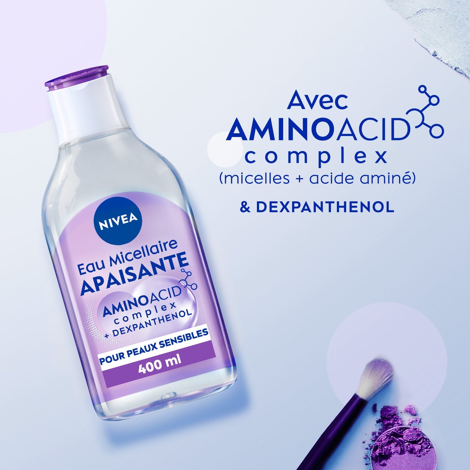 NIVEA Beruhigendes Mizellenwasser mit seinem Aminosäurekomplex, angereichert mit Mizellen und Aminosäuren, entfernt sanft Make-up und Unreinheiten ohne Reiben oder Abspülen. Dank seiner mit Dexpanthenol angereicherten Zusammensetzung wurde es speziell für empfindliche Haut entwickelt, spendet Feuchtigkeit und beruhigt die Haut. Sie wird weich und tiefengereinigt. Seine parfümfreie Formel enthält 97 % Inhaltsstoffe natürlichen Ursprungs. Tränken Sie ein Wattepad mit NIVEA Beruhigendem Mizellenwasser und entfernen Sie sanft Make-up vom Gesicht, ohne zu reiben. Die Flasche besteht zu 97 % aus recyceltem Material (ohne Deckel, Einsatz und Etiketten) und ist zu 100 % recycelbar. Unsere Mizellenwasser sind dermatologisch und augenärztlich getestet.