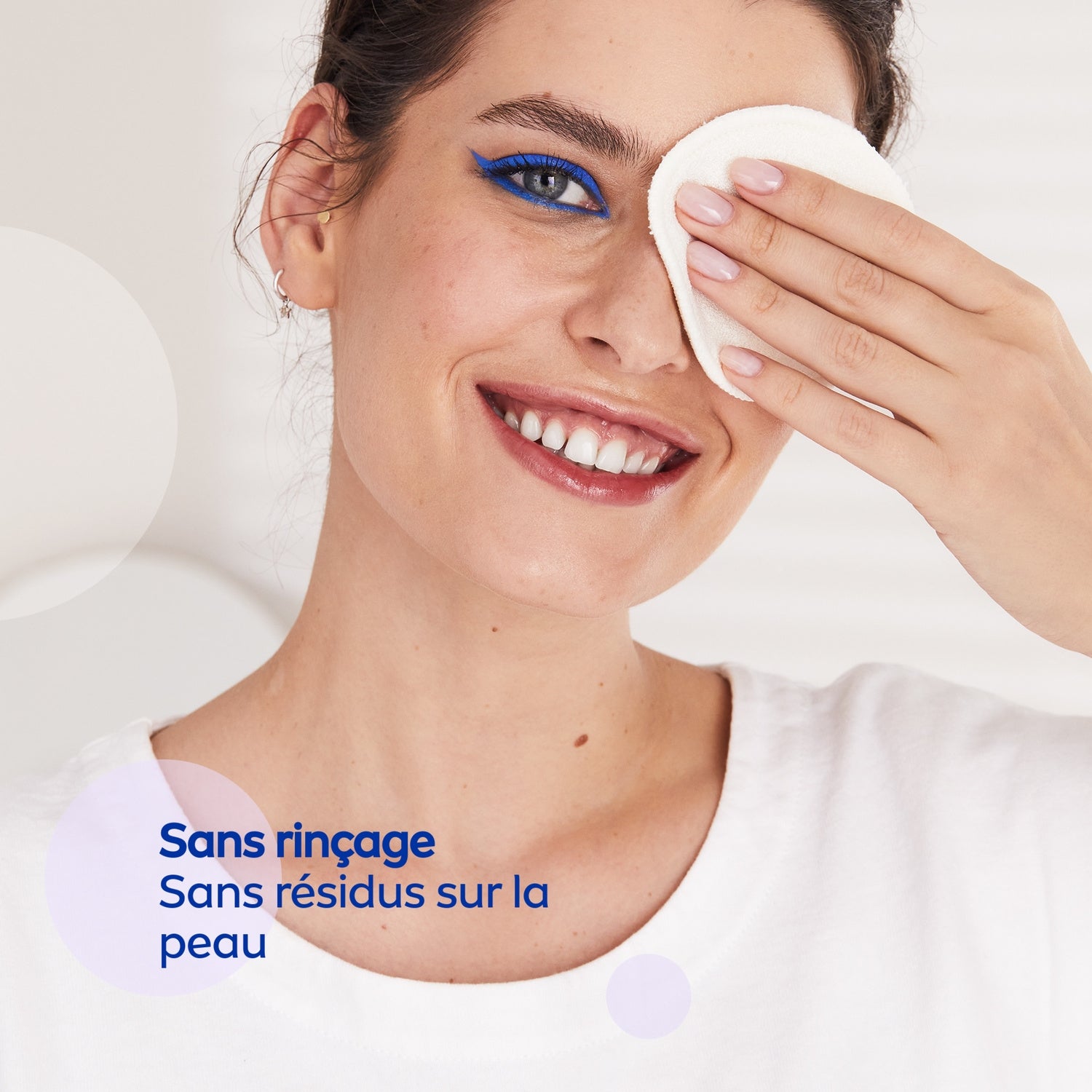 Entfernen Sie mit einem getränkten Wattepad sanft das Make-up von Gesicht, geschlossenen Augen und Lippen.