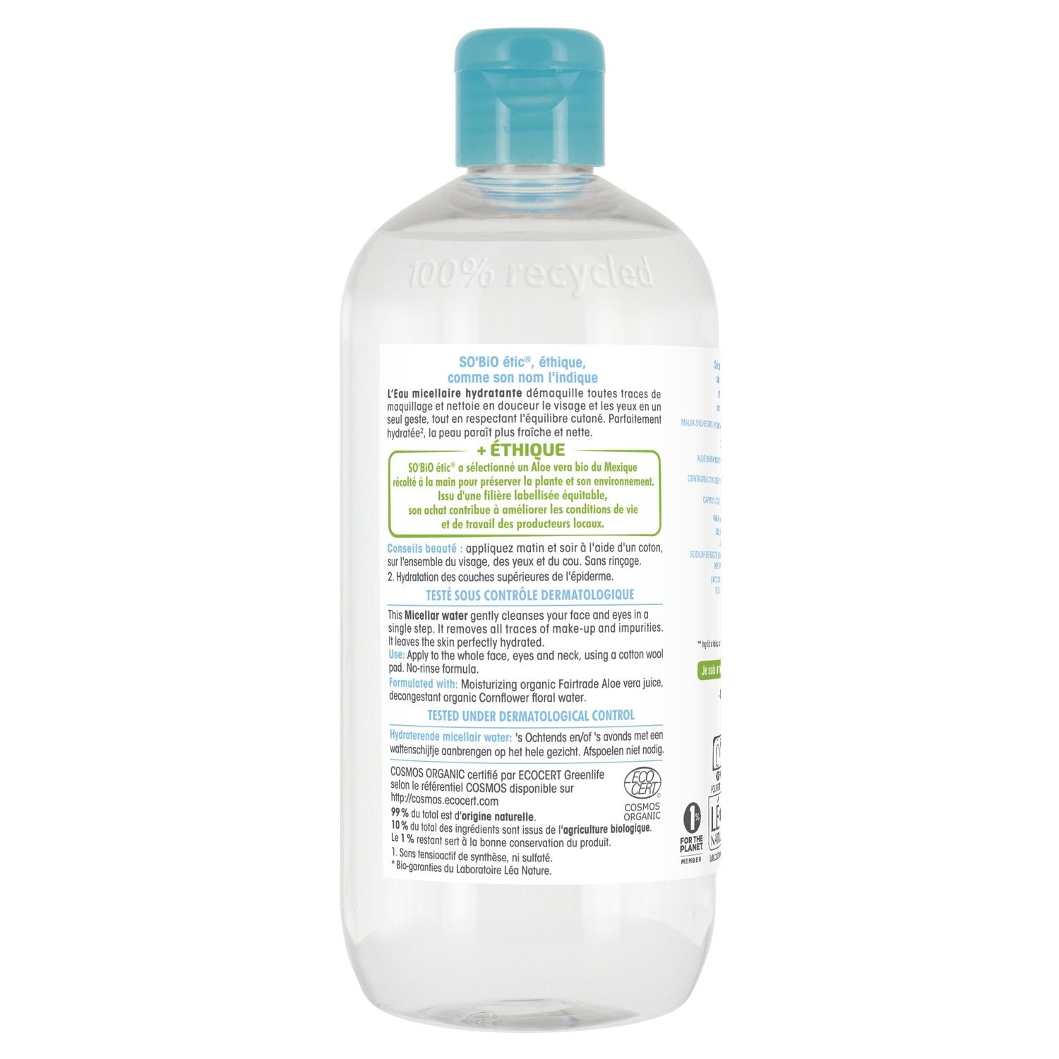 COSMOS ORGANIC zertifiziert von ECOCERT Greenlife. 99 % natürlichen Ursprungs. 0 % synthetische Tenside und Farbstoffe. + ETHISCH: - FAIR TRADE BIO-SEKTOR: SO'BiO étic hat Bio-Aloe Vera aus Mexiko ausgewählt, die von Hand geerntet wird, um die Pflanze und ihre Umwelt zu schützen. Da sie aus einem Fair-Trade-zertifizierten Sektor stammt, trägt ihr Kauf dazu bei, die Lebens- und Arbeitsbedingungen der lokalen Produzenten zu verbessern. - RECYCELTE FLASCHE - HERGESTELLT IN FRANKREICH - 1 % FÜR DEN PLANETEN