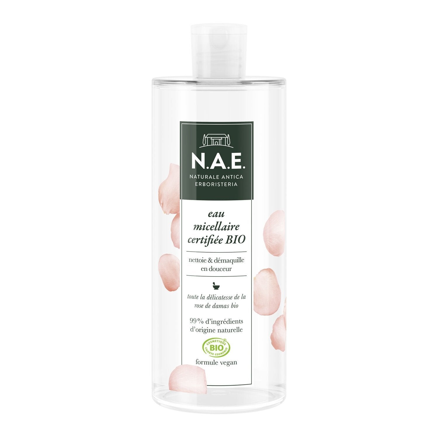 Das Mizellenwasser ist mit Bio-Rosenwasser aus Damaszener angereichert. Es reinigt sanft und entfernt Make-up von Gesicht und Augen. Es klärt und beruhigt Ihre Haut und macht sie weich und angenehm, mit einem dezenten Rosenduft. NAE-Hautpflegeprodukte sind direkt von der italienischen Kräuterkunde inspiriert: uraltes Know-how, das sich auf die medizinischen Eigenschaften von Pflanzen konzentriert. Alle Hauttypen. Alle unsere Produkte sind von Ecocert Greenlife gemäß dem COSMOS-Standard COSMOS ORGANIC zertifiziert: NAE Natural Antica Erboristeria Soothing Micellar Water. Zertifizierte Bio- und vegane Formel. 1 x 500 ml