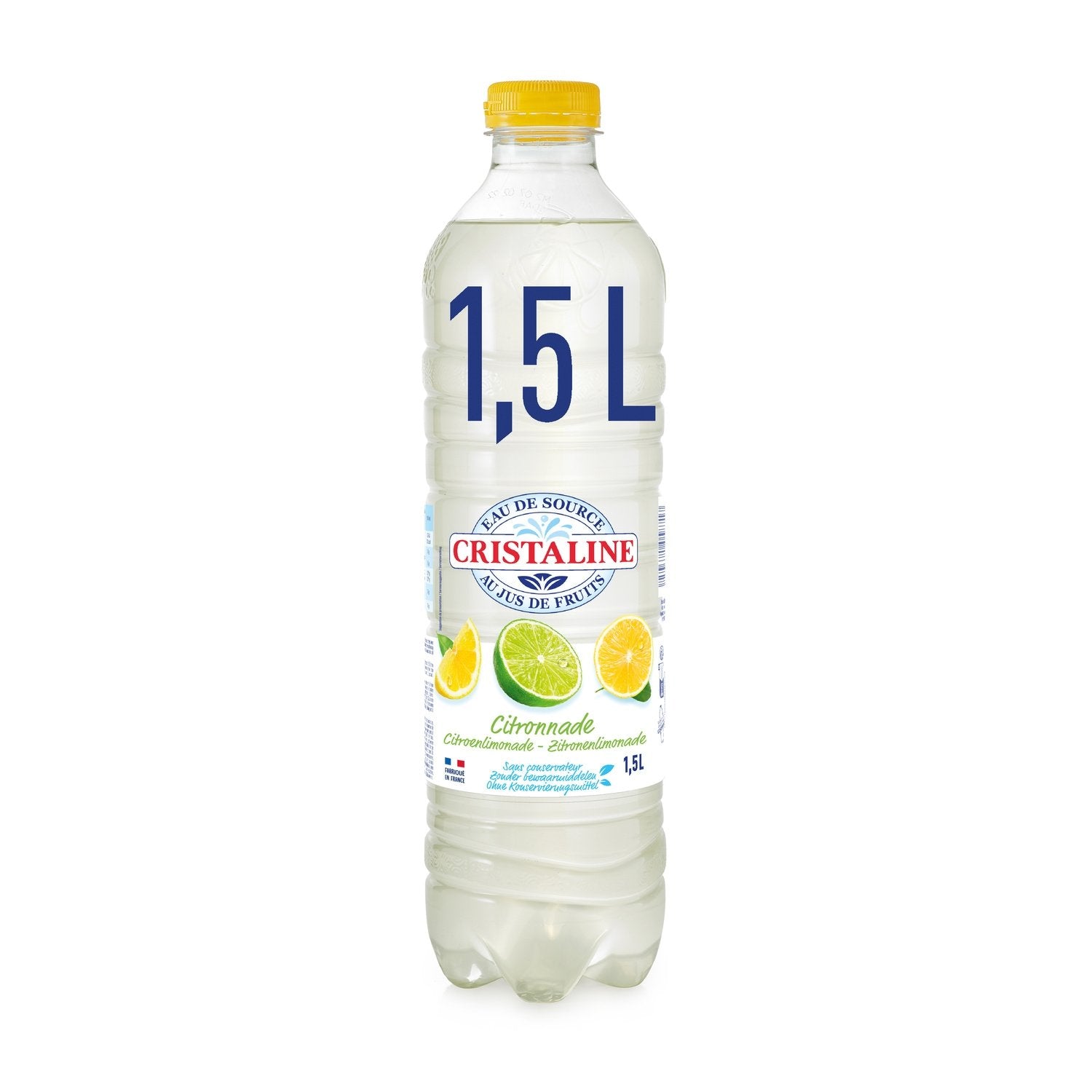 Cristaline Quellwassergetränk aus Fruchtsaftkonzentrat mit Süßungsmittel, Zitronengeschmack.