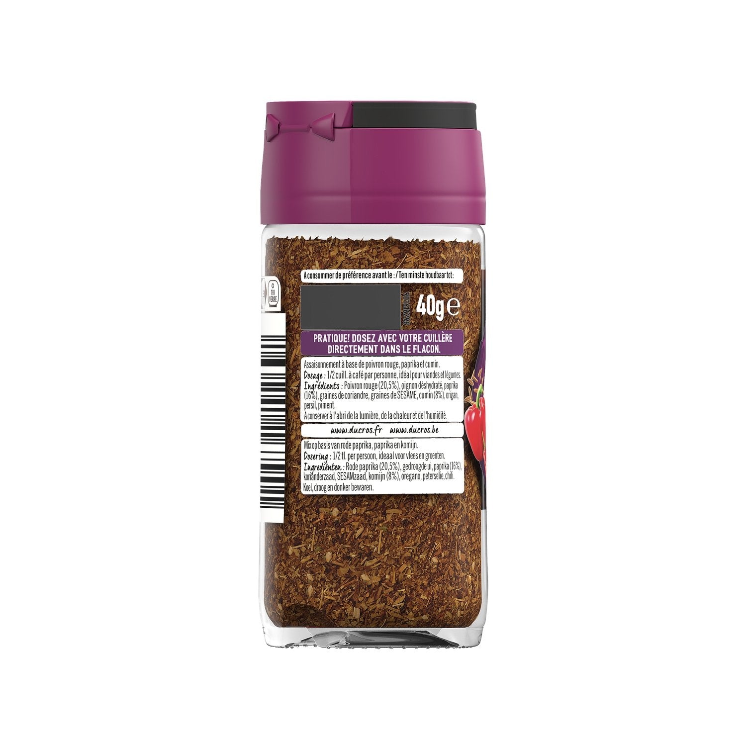 Zutaten: rote Paprika (20,5 %), getrocknete Zwiebeln, Paprika (16 %), Koriandersamen, SESAMSAMEN, Kreuzkümmel (8 %), Oregano, Petersilie, Chilipfeffer.
