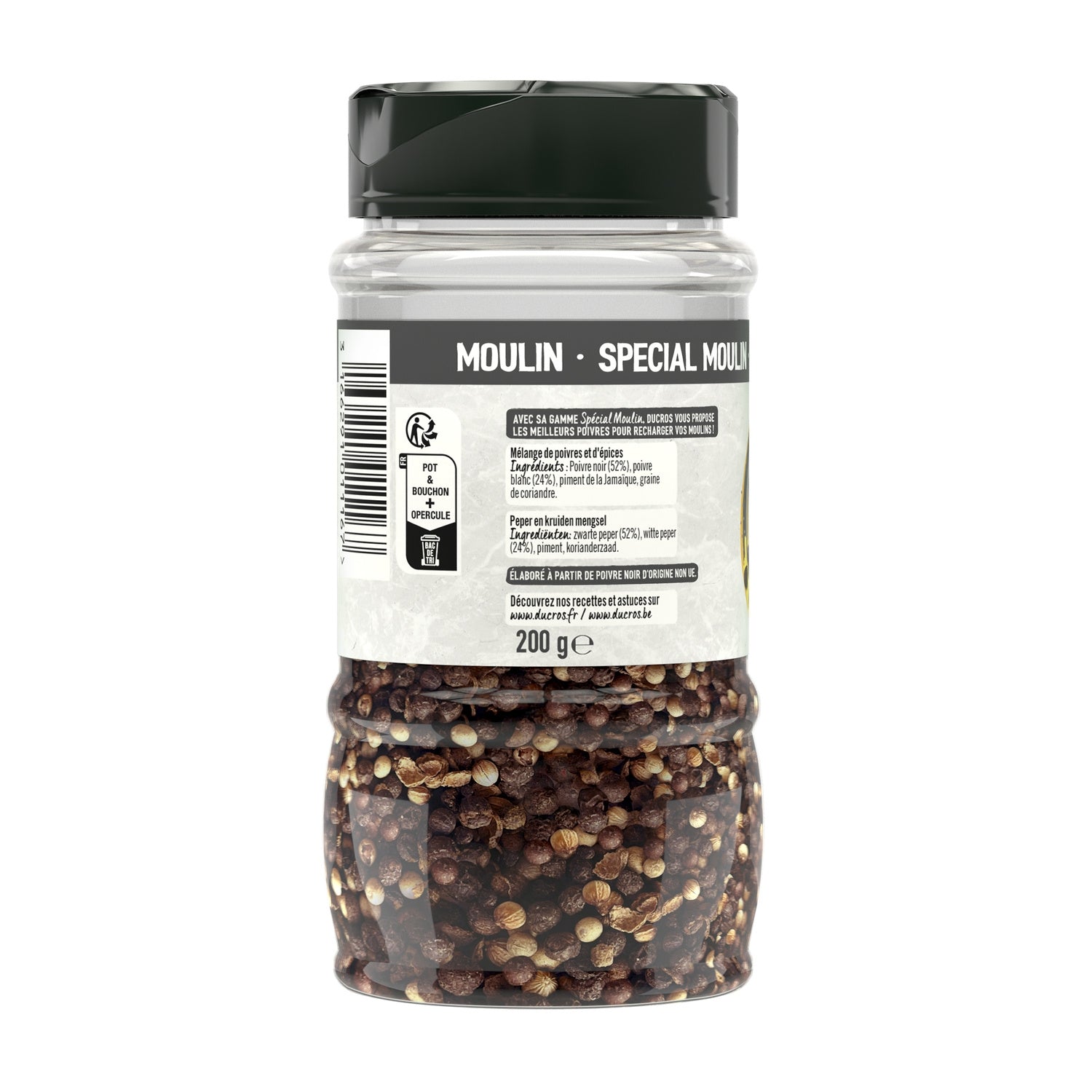 DUCROS BIETET IHNEN MIT SEINER FAMILIENGRÖSSE SEINE PFEFFERKÖRNER AN, DIE IDEAL ZUM NACHFÜLLEN IHRER MÜHLEN SIND.