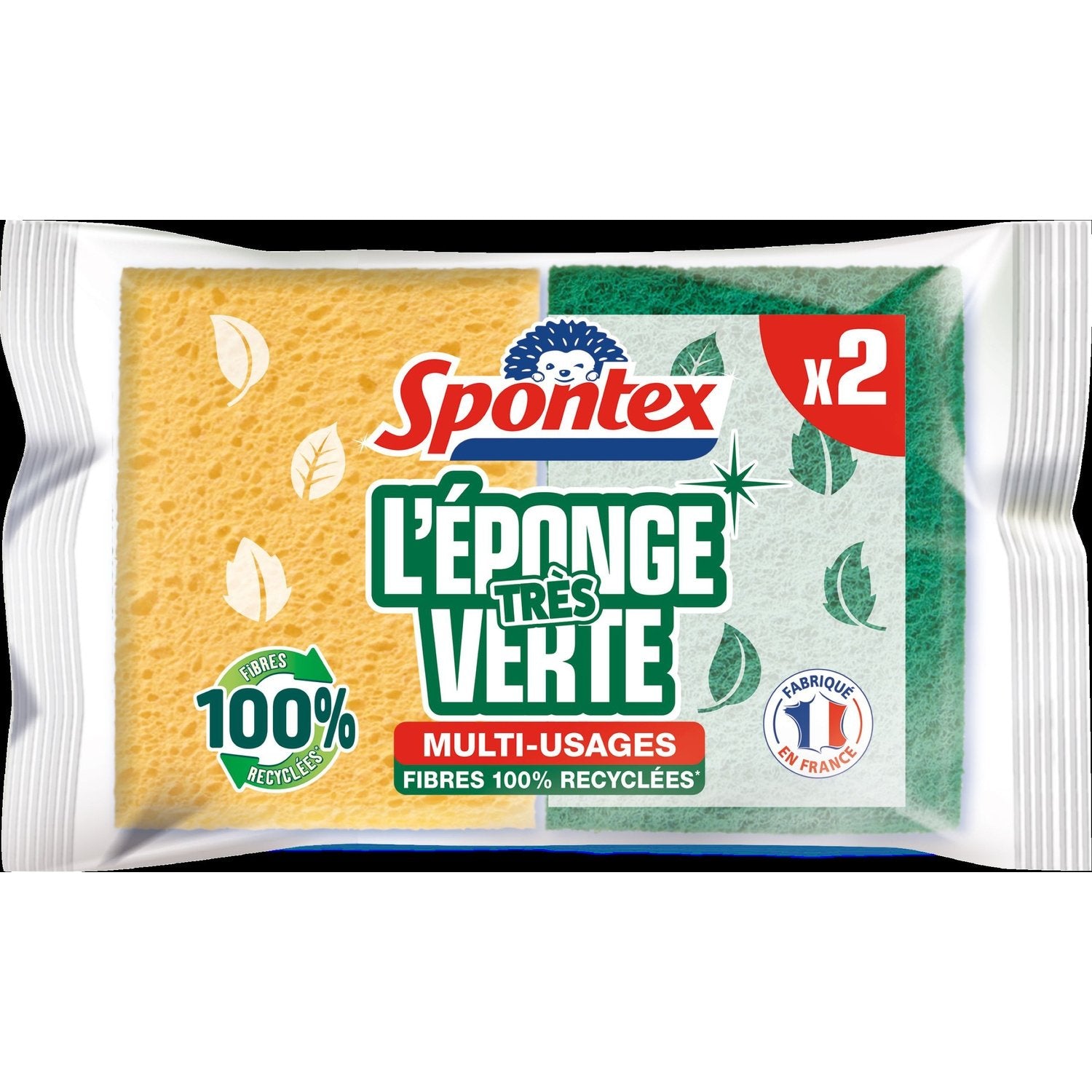 Very Green Sponge, ein umweltfreundlicher Schwamm zu einem erschwinglichen Preis. Sein Scheuerteil besteht aus 100 % recycelten Fasern und funktioniert garantiert auf mehreren Oberflächen.
